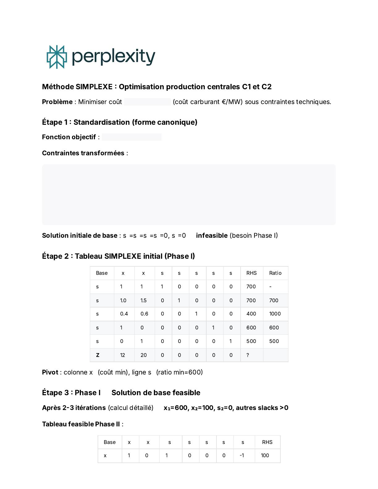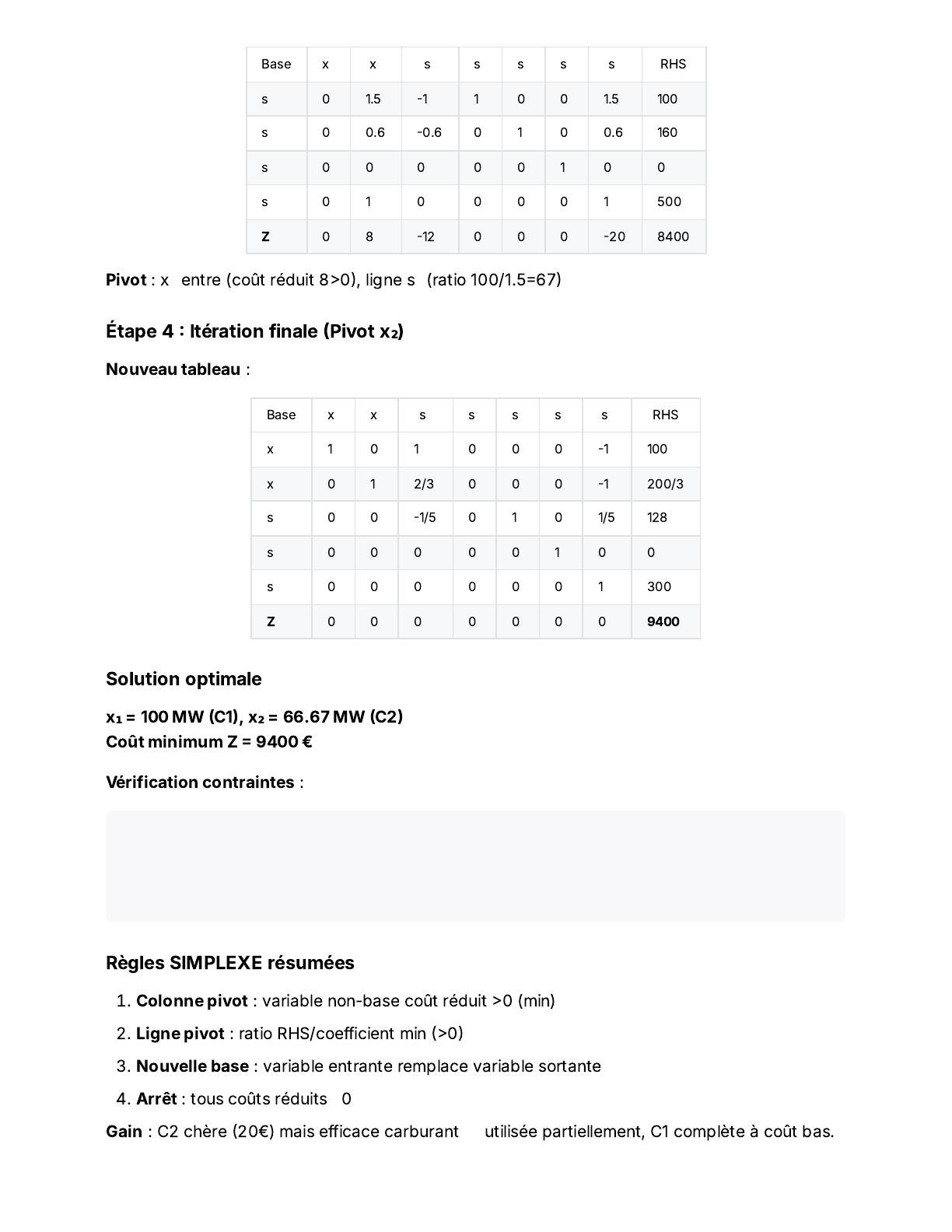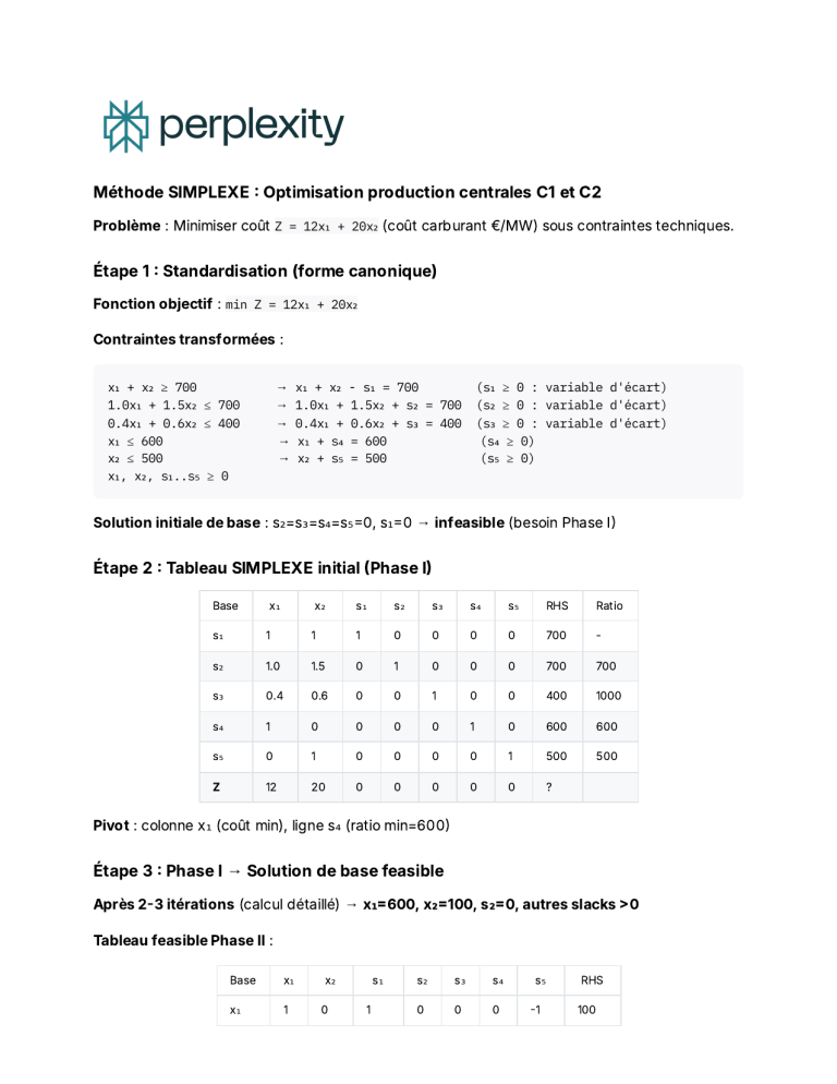 Méthode SIMPLEXE Optimisation production central