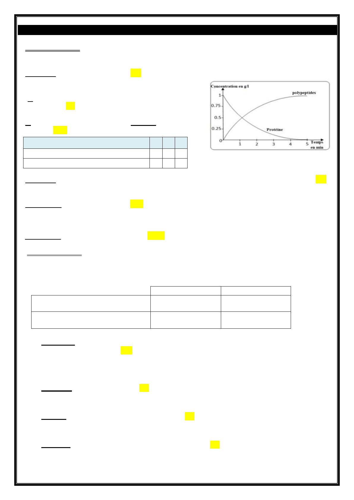 4- Décrire l'évolution de la concentration des protéines et des polypeptides au cours de l'expérience. 1pt