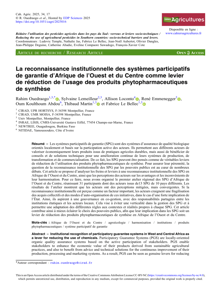 R. Ouedraogo et al. : Cah. Agric. 2025, 34, 17