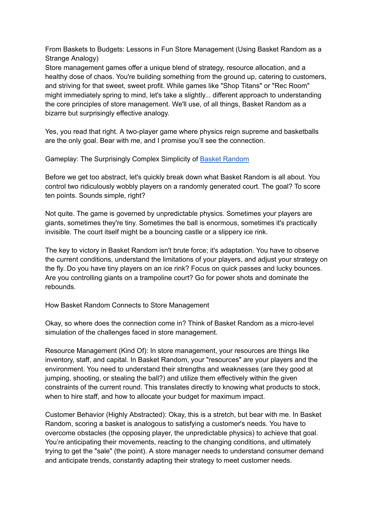 the core principles of store management. We'll use, of all things, Basket Random as a