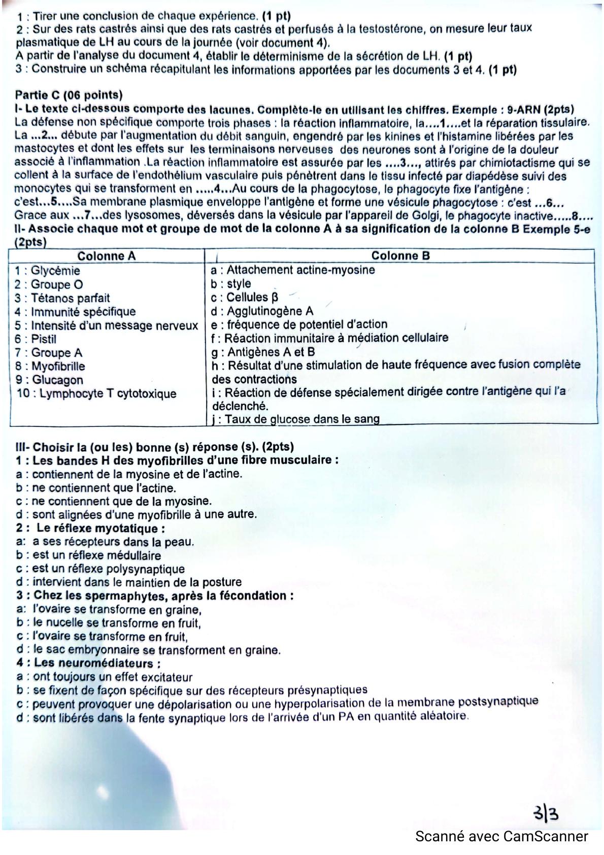preuve de DSVT – Baccalauréat 2025 – Série D – Togo