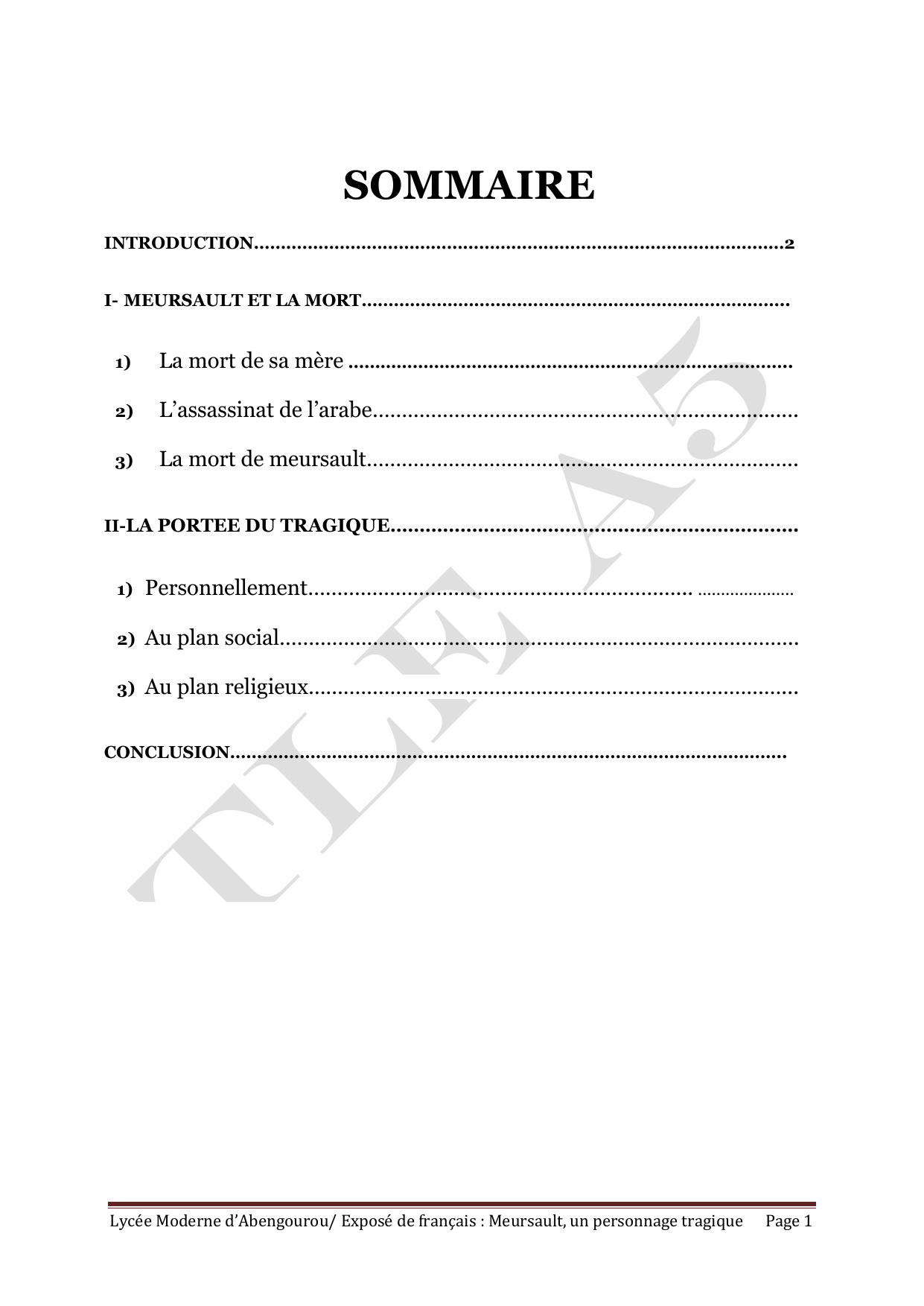 Lycée Moderne d’Abengourou/ Exposé de français : Meursault, un personnage tragique Page 3