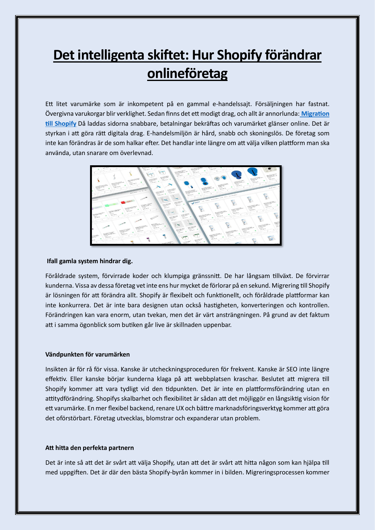 E-handelns slagfält gynnar de snabba och exibla. Migrering ll Shopify är e smart drag som inte bara