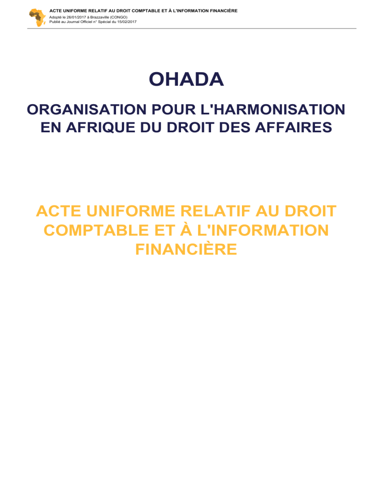 ACTE UNIFORME RELATIF AU DROIT COMPTABLE ET À L'INFORMATION FINANCIÈRE