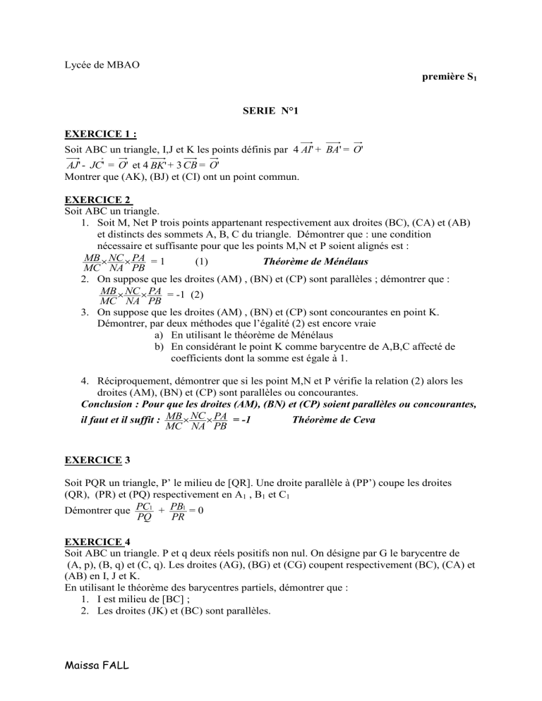 et (CM) coupent respectivement les cotés [BC], [CA] et [AB] du triangle en A’, B’ et C’.
