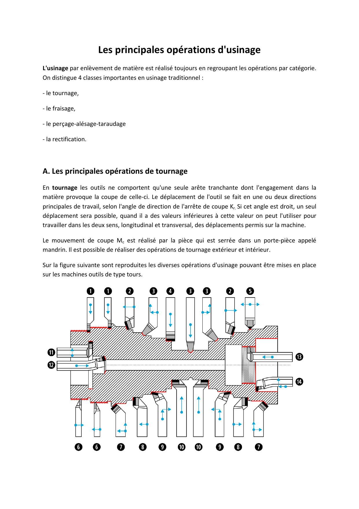 C. Les principales opérations de perçage