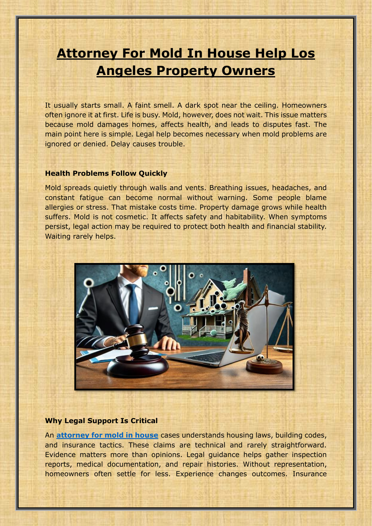 suffers. Mold is not cosmetic. It affects safety and habitability. When symptoms