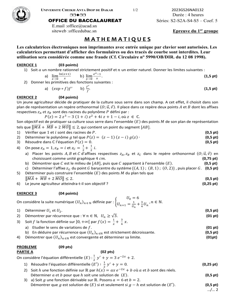 siteweb :officedubac.sn Epreuve du 1er groupe