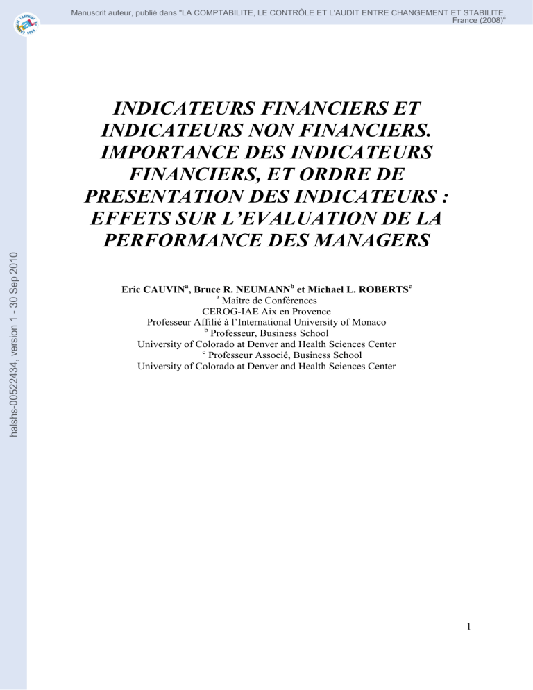 accordaient plus d’importance aux indicateurs non financiers (Cauvin et al. 2007).