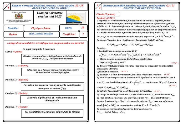 L’usage de la calculatrice scientifique non programmable est autorisé