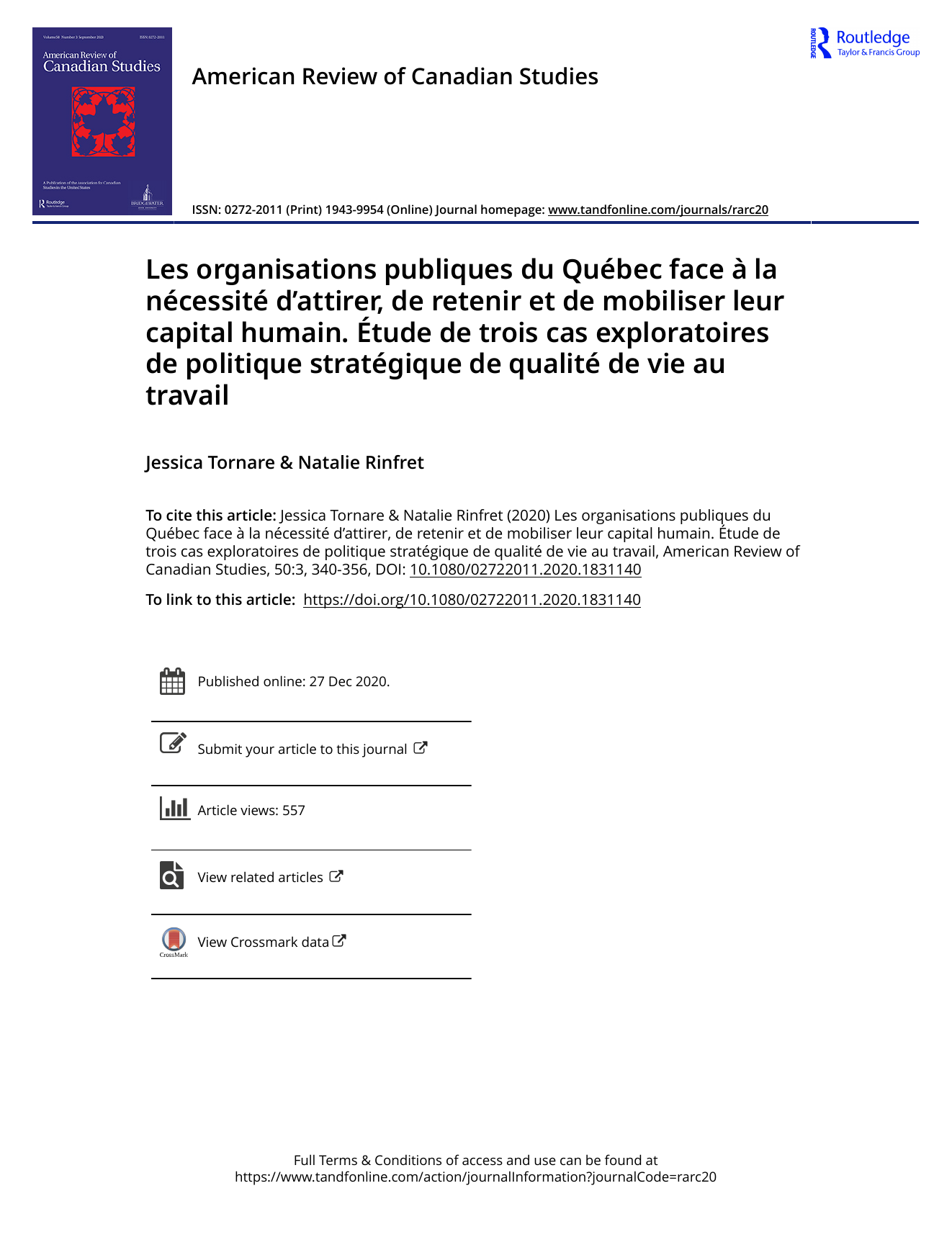 AMERICAN REVIEW OF CANADIAN STUDIES 343