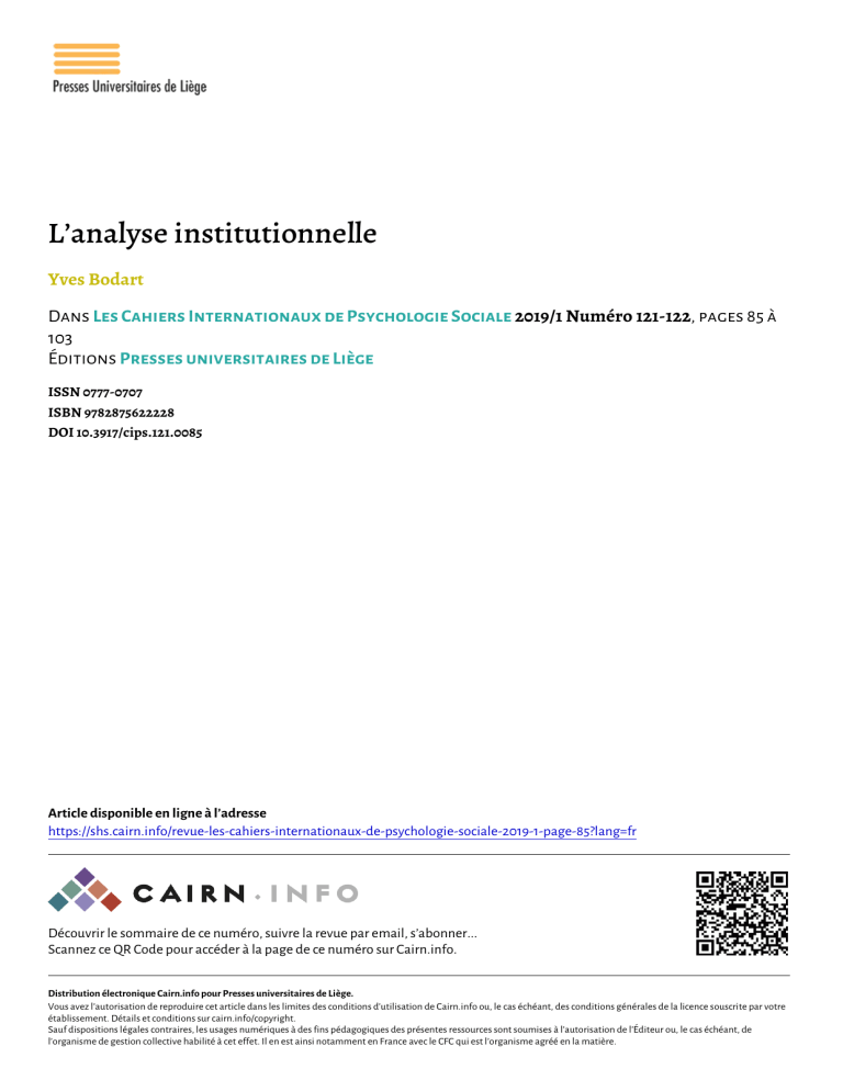 parte da actual «Acção Cientíca». Segundo René Lourau, «a análise institucional