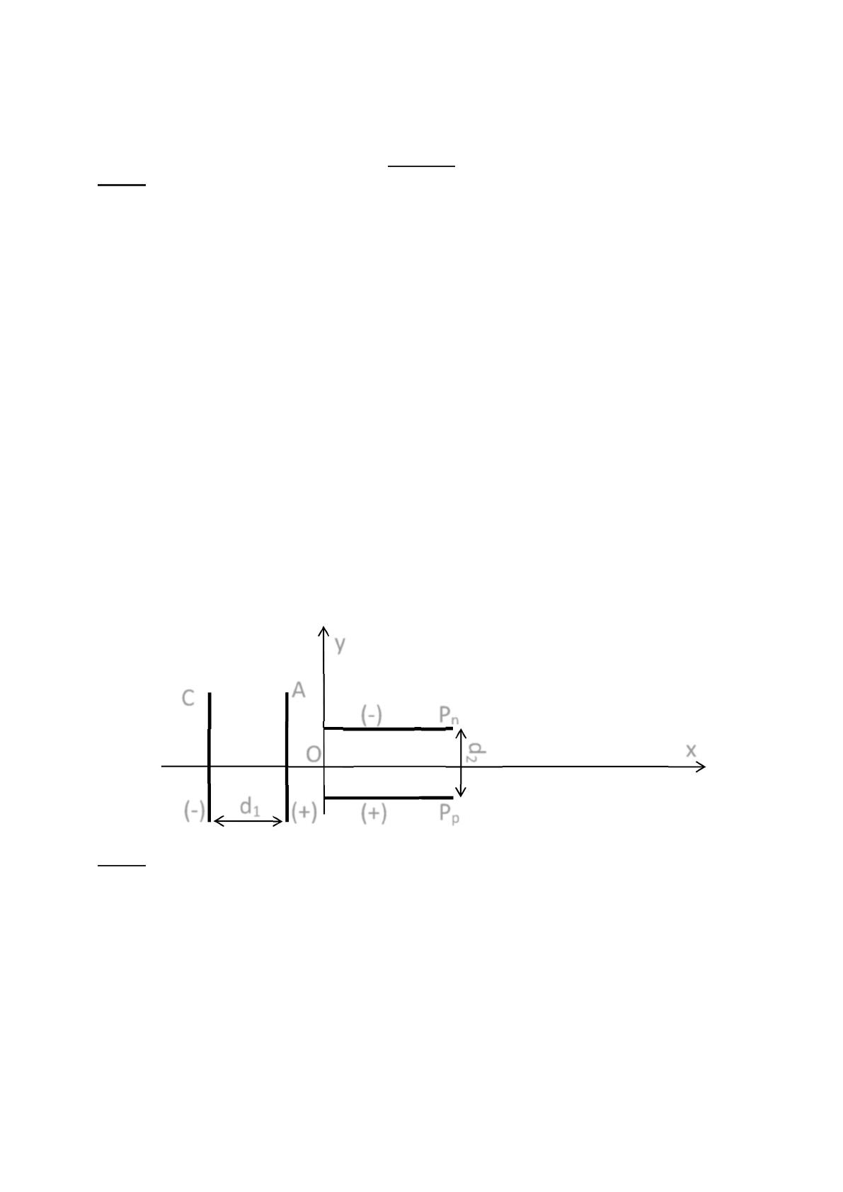 plaques parallèles verticales anode A et cathode C, placée à une distance d