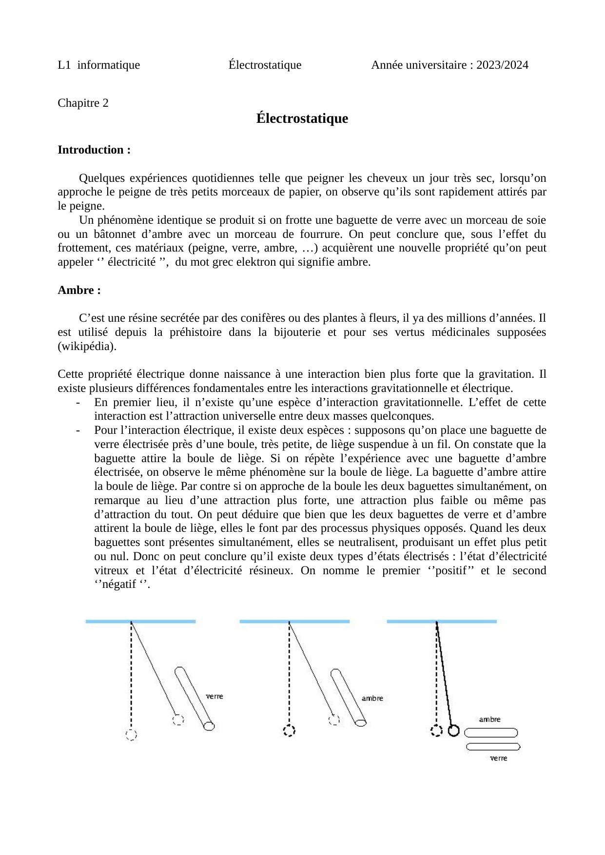 L1 informatique Électrostatique Année universitaire: 2023/2024