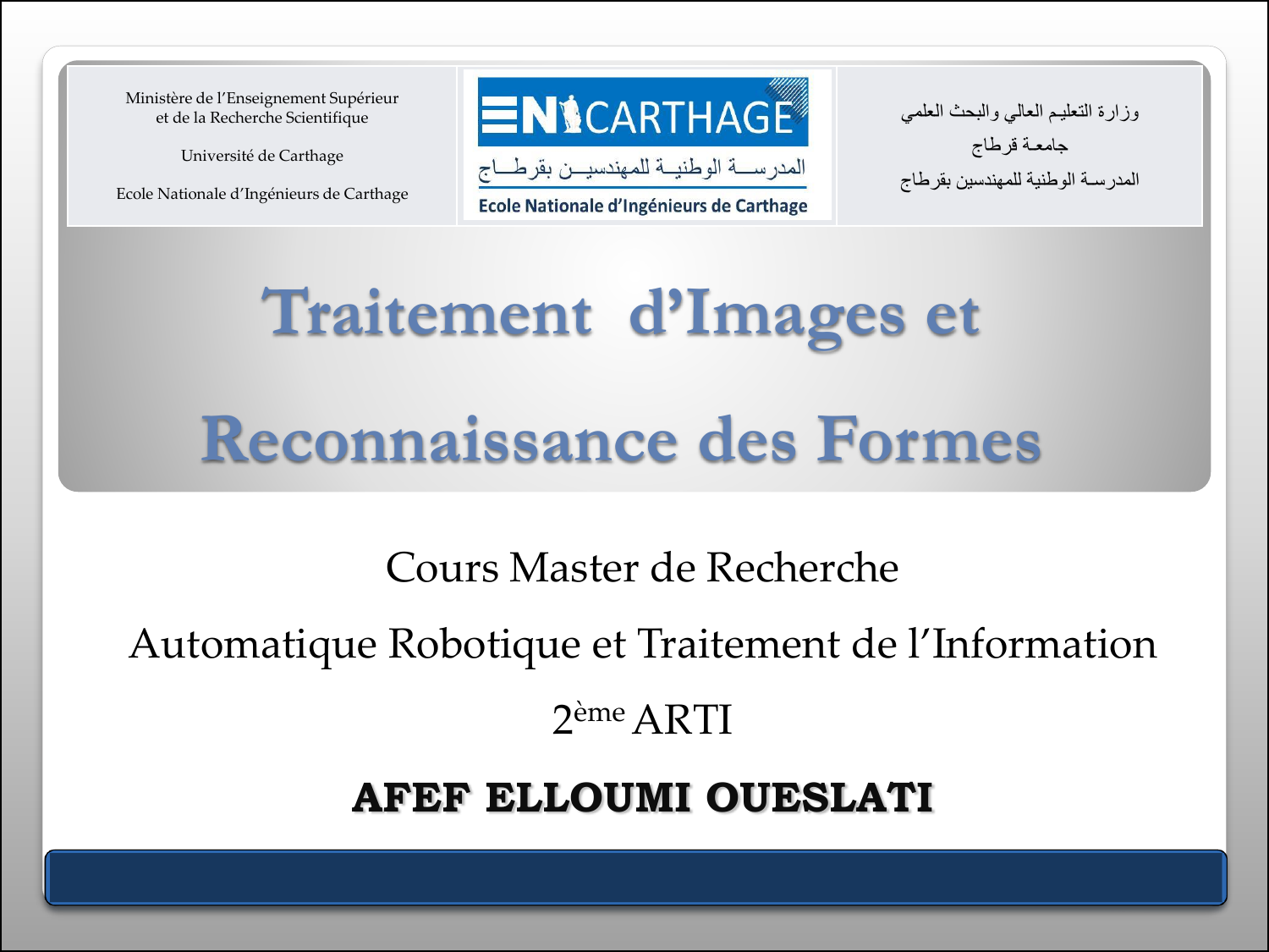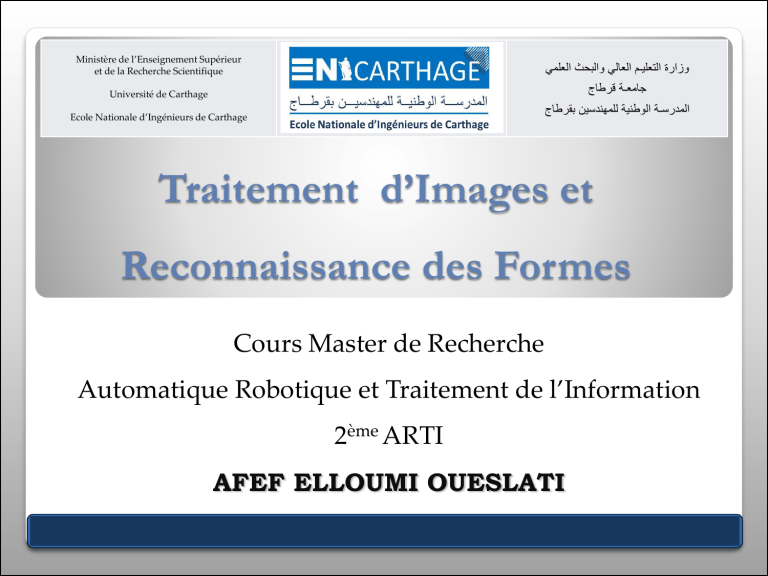 Afef Elloumi Oueslati Traitement d’Images et Reconnaissance des formes