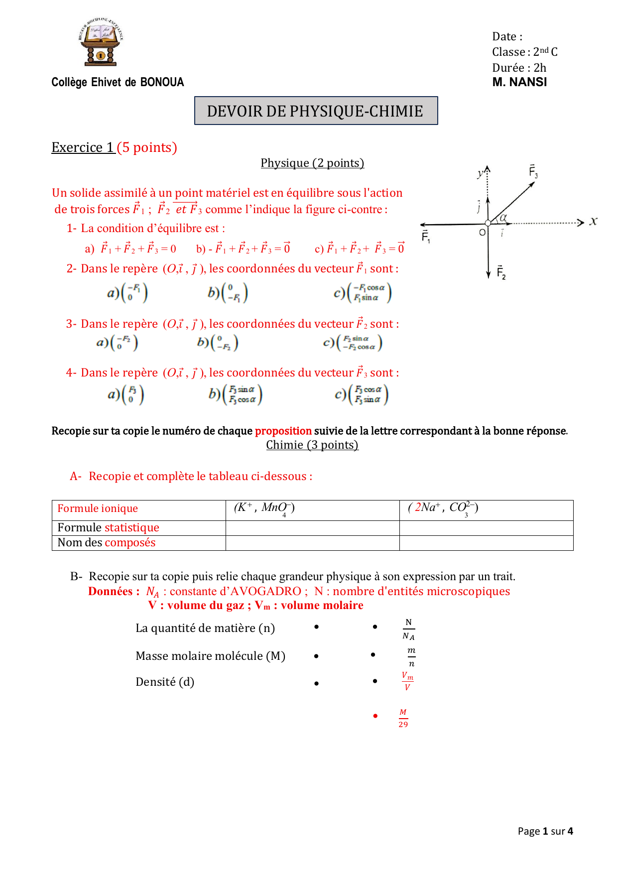 Au cours d’une activité du club scientifique d’un Lycée Moderne, un groupe d’élève de 2nde C désire