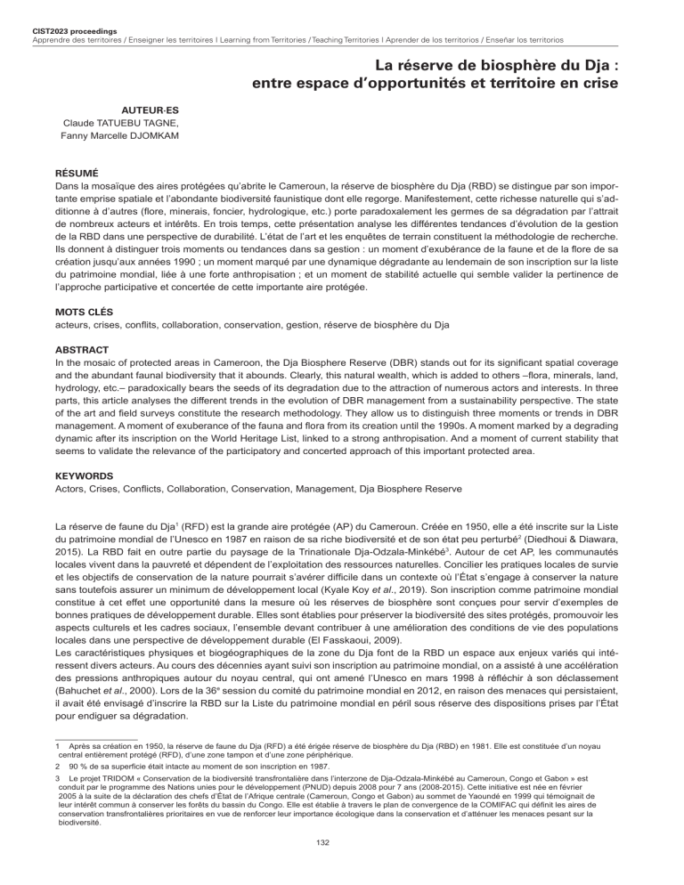 l’origine des crises et des conits qui perturbent l’espace en conservation.