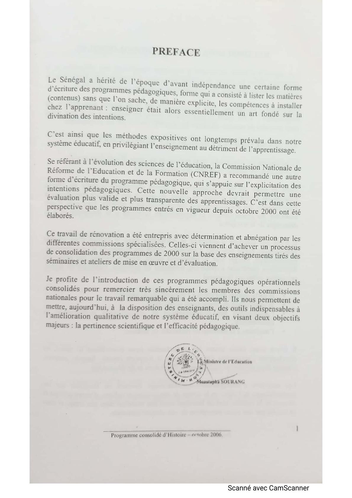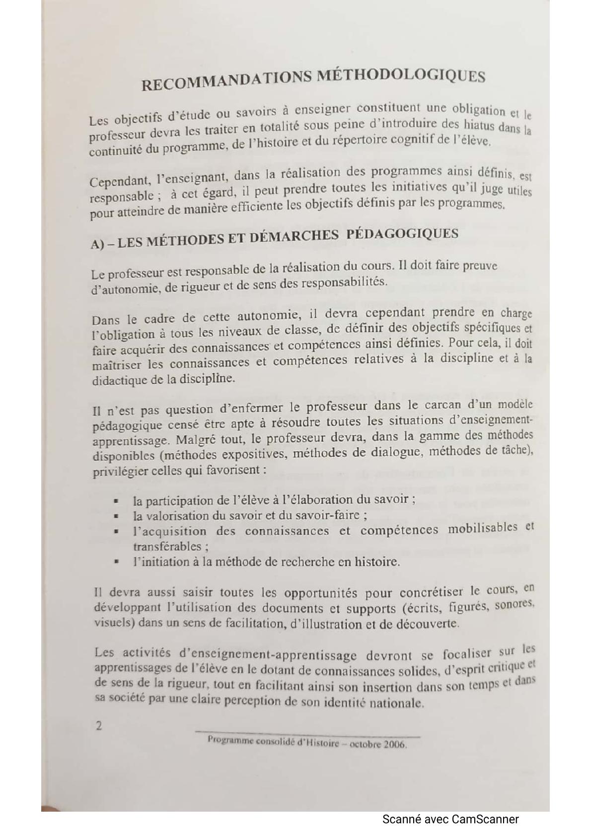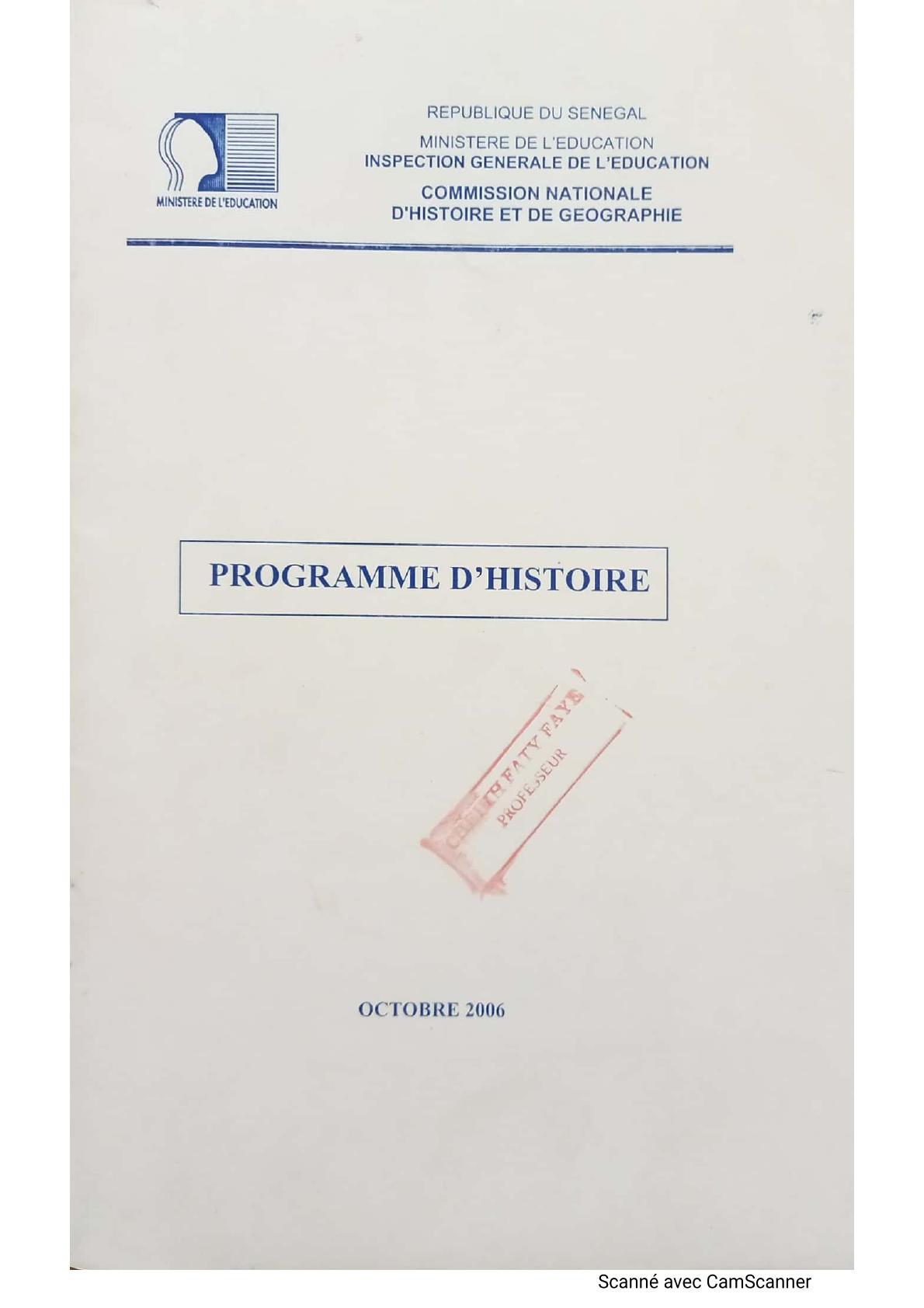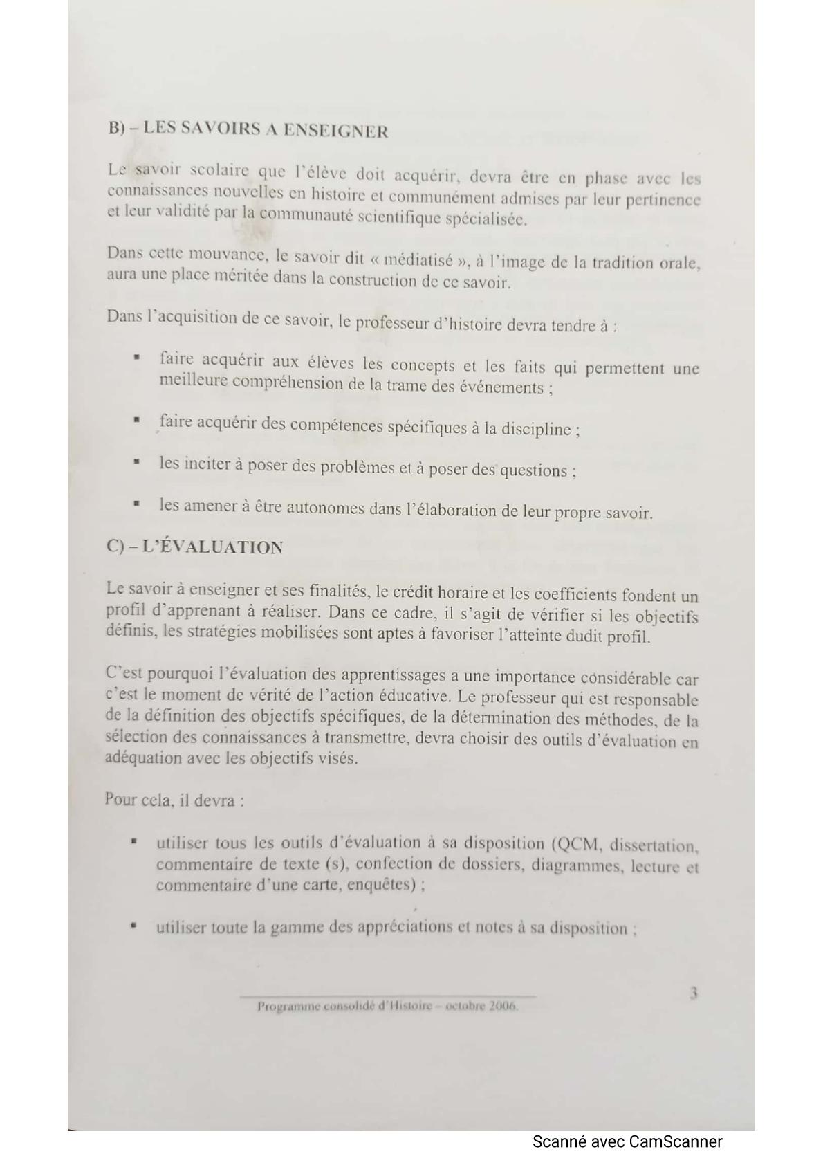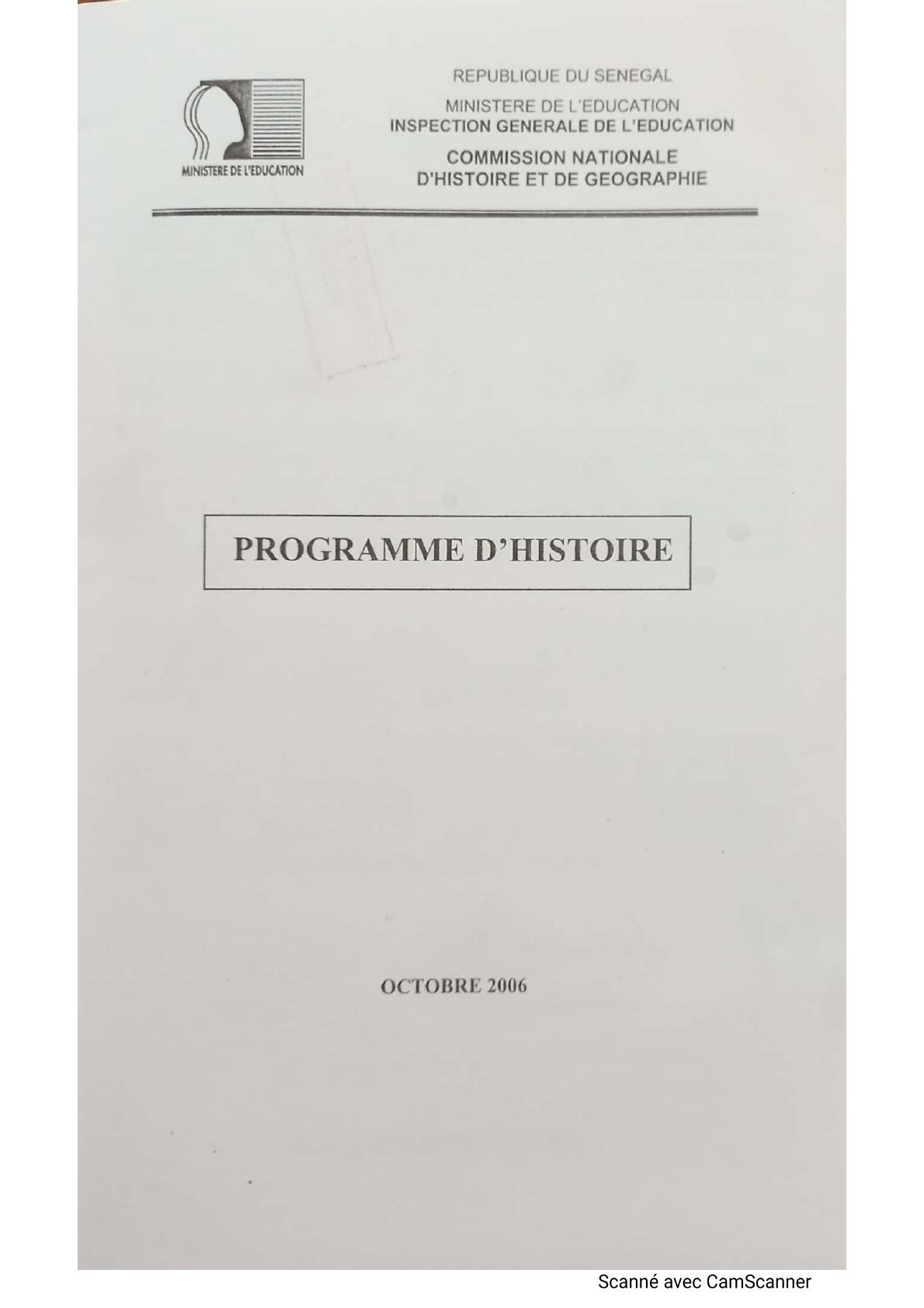 Programme consolidé d'histoire octobre 2006