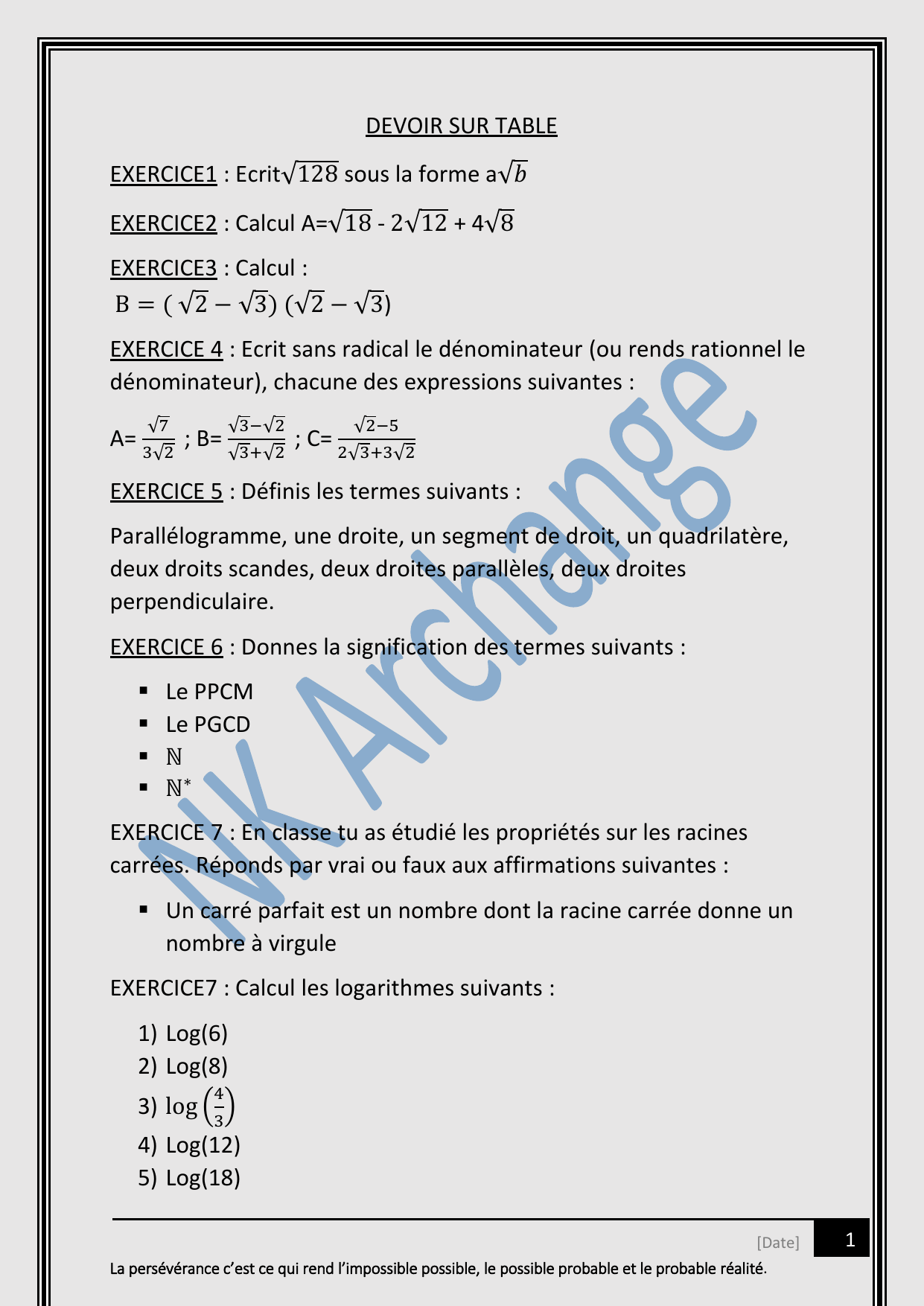 EXERCICE 7 : En classe tu as étudié les propriétés sur les racines