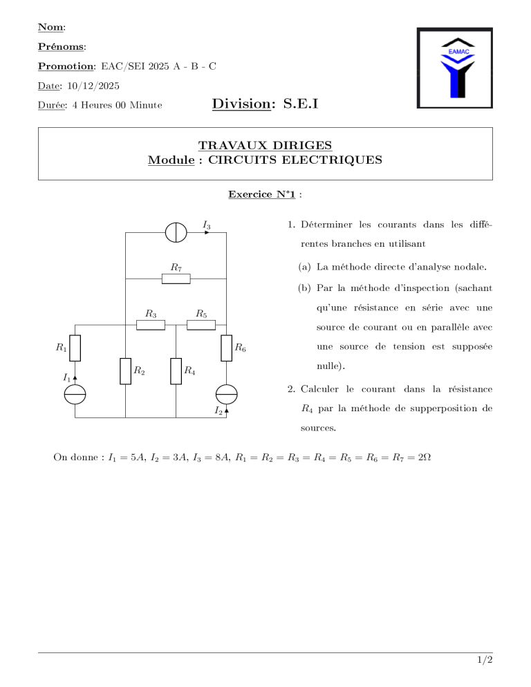 I1= 5A I2= 3A I3= 8A R1=R2=R3=R4=R5=R6=R7= 2Ω