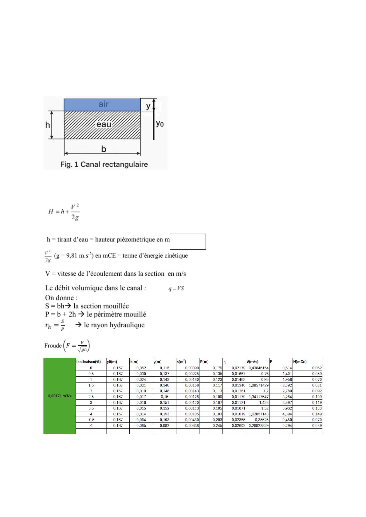 d'un canal de forme rectangulaire, ayant une largeur de b=75mm, une hauteur totale de