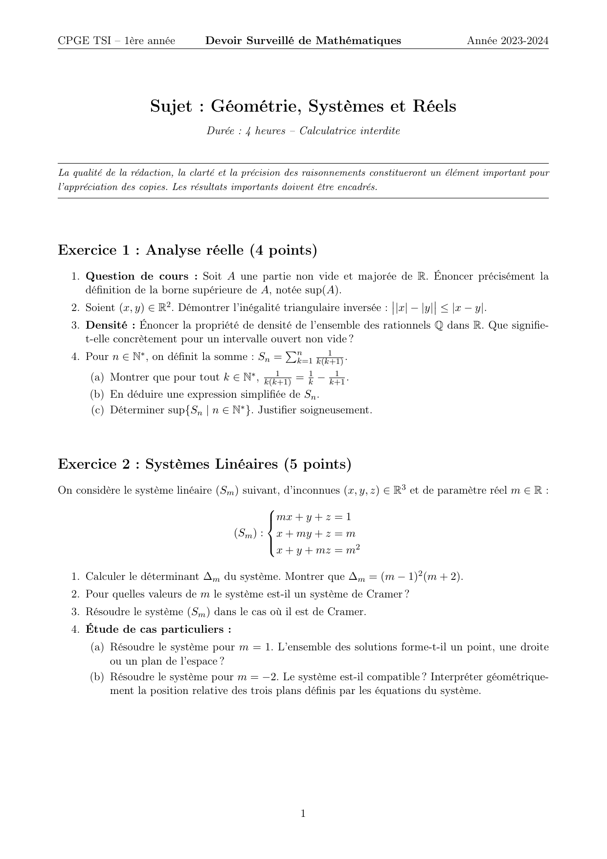 CPGE TSI – 1ère année Devoir Surveillé de Mathématiques Année 2023-2024