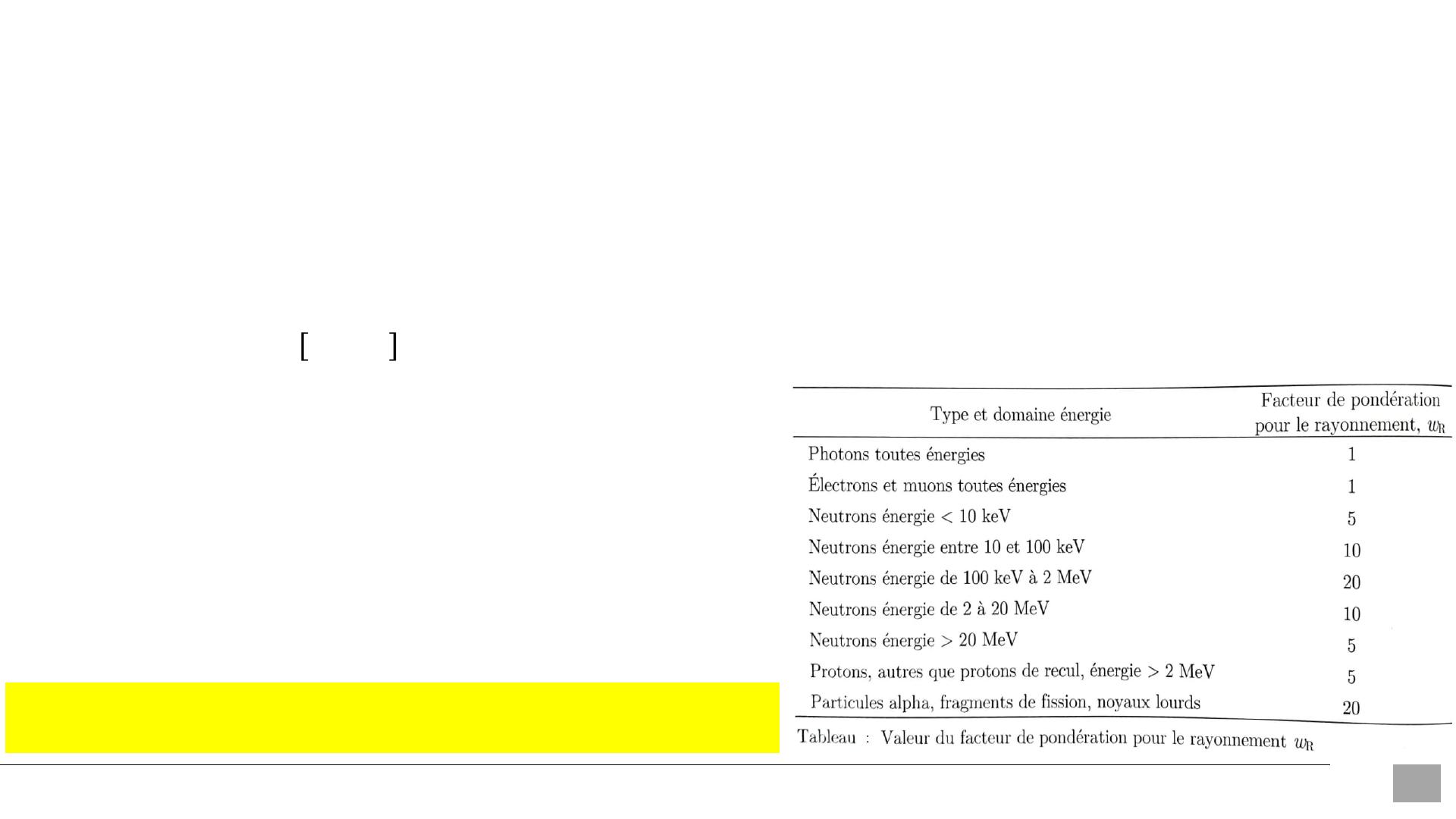oFacteur de pondération pour le rayonnement et dose