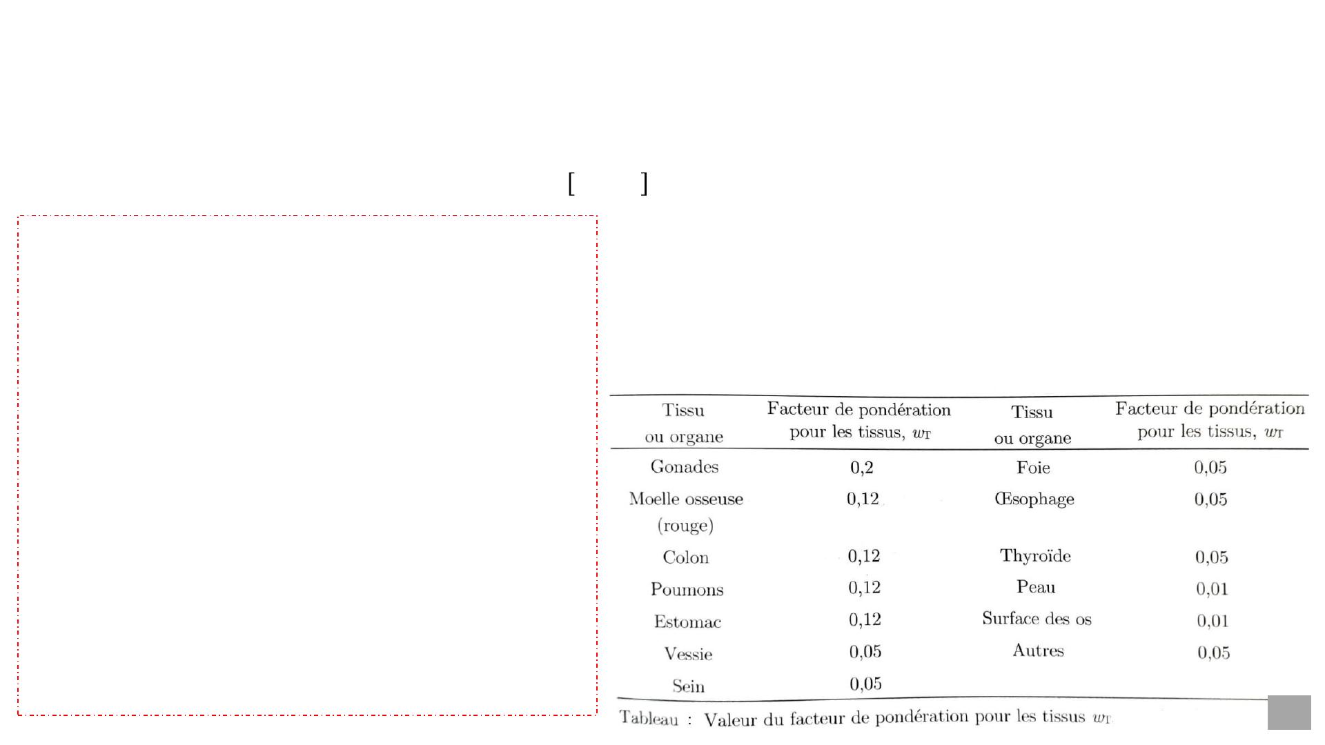 Facteur de pondération pour les tissus, dose efficace
