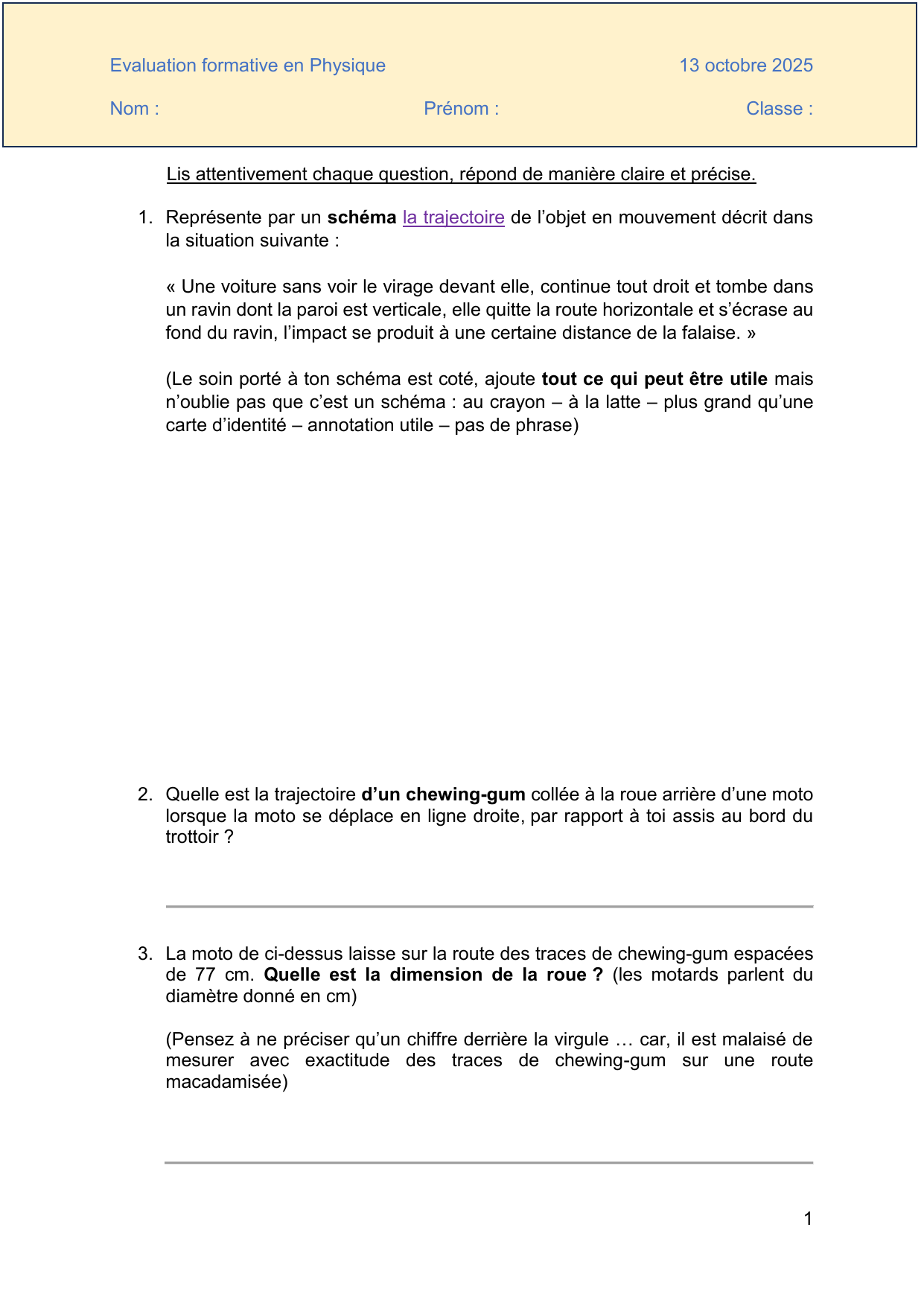 2. Quelle est la trajectoire d’un chewing-gum collée à la roue arrière d’une moto
