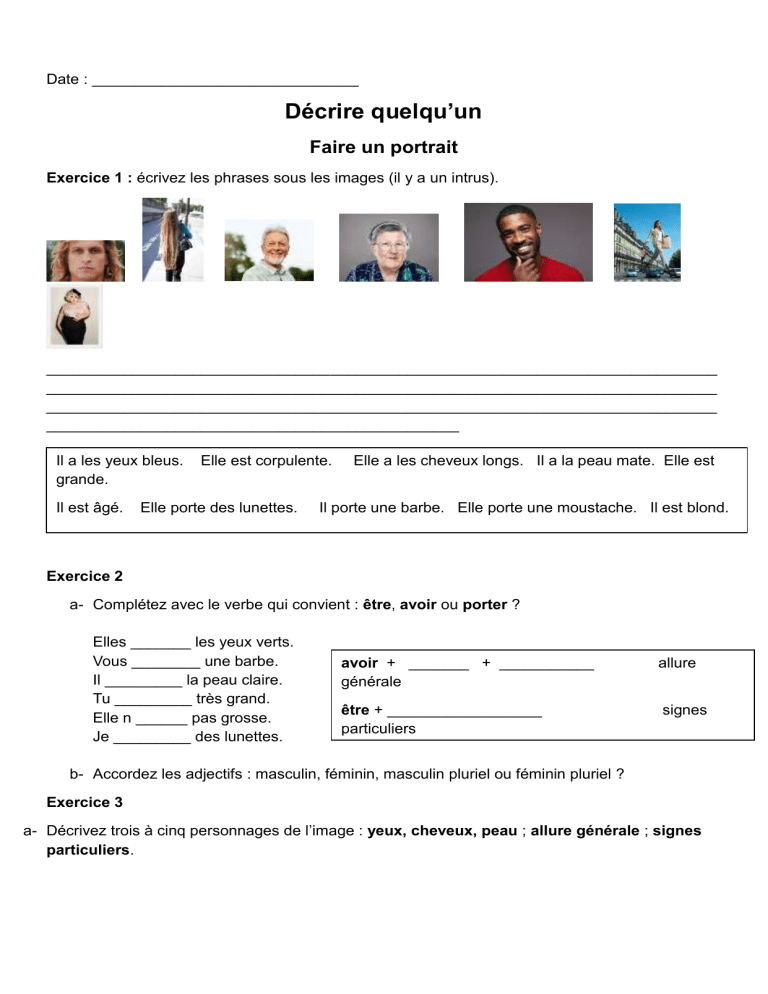 Exercice 4 : lisez ces trois portraits. Le signe (…) montre un extrait coupé.