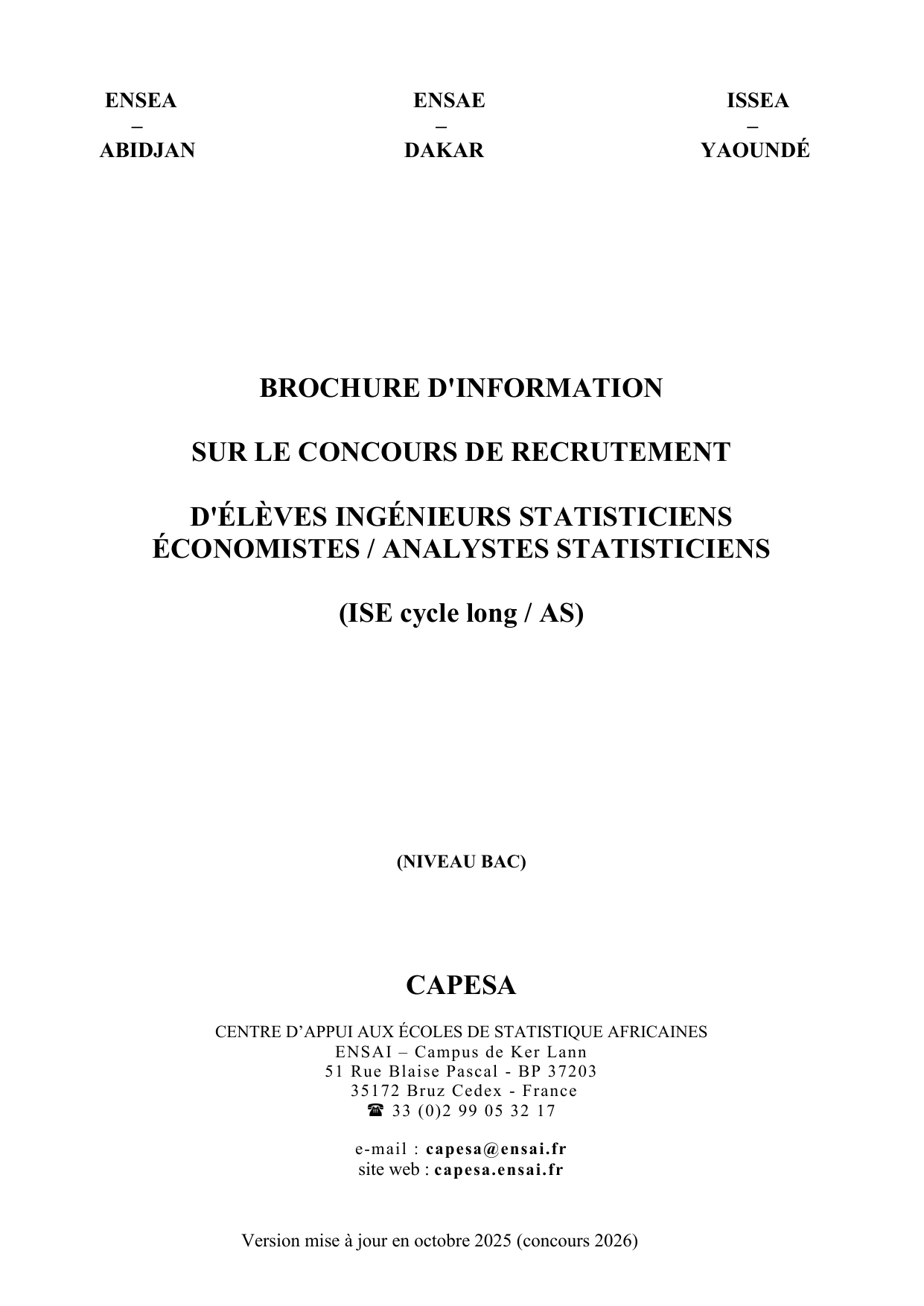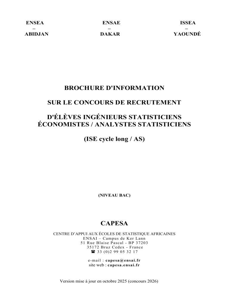 e-mail : scolarite.ensae@ansd.sn – Site : www.ensae.sn