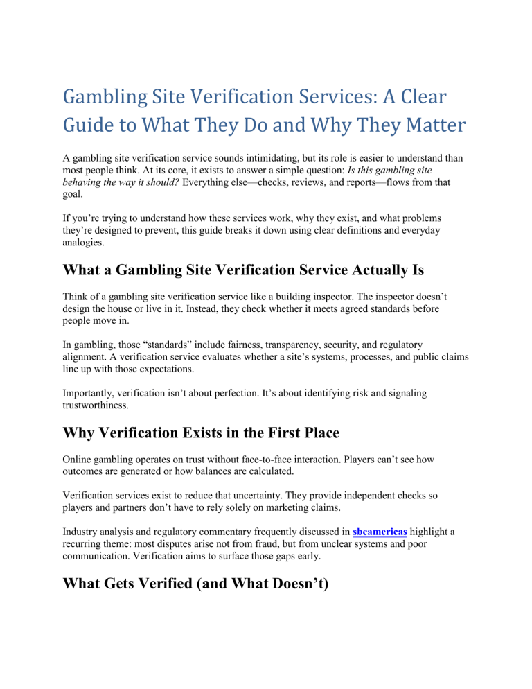 A gambling site verification service sounds intimidating, but its role is easier to understand than