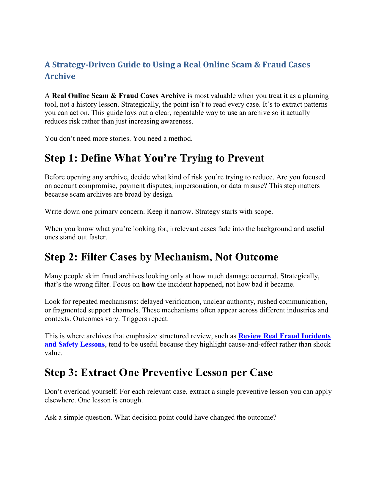This is where archives that emphasize structured review, such as Review Real Fraud Incidents