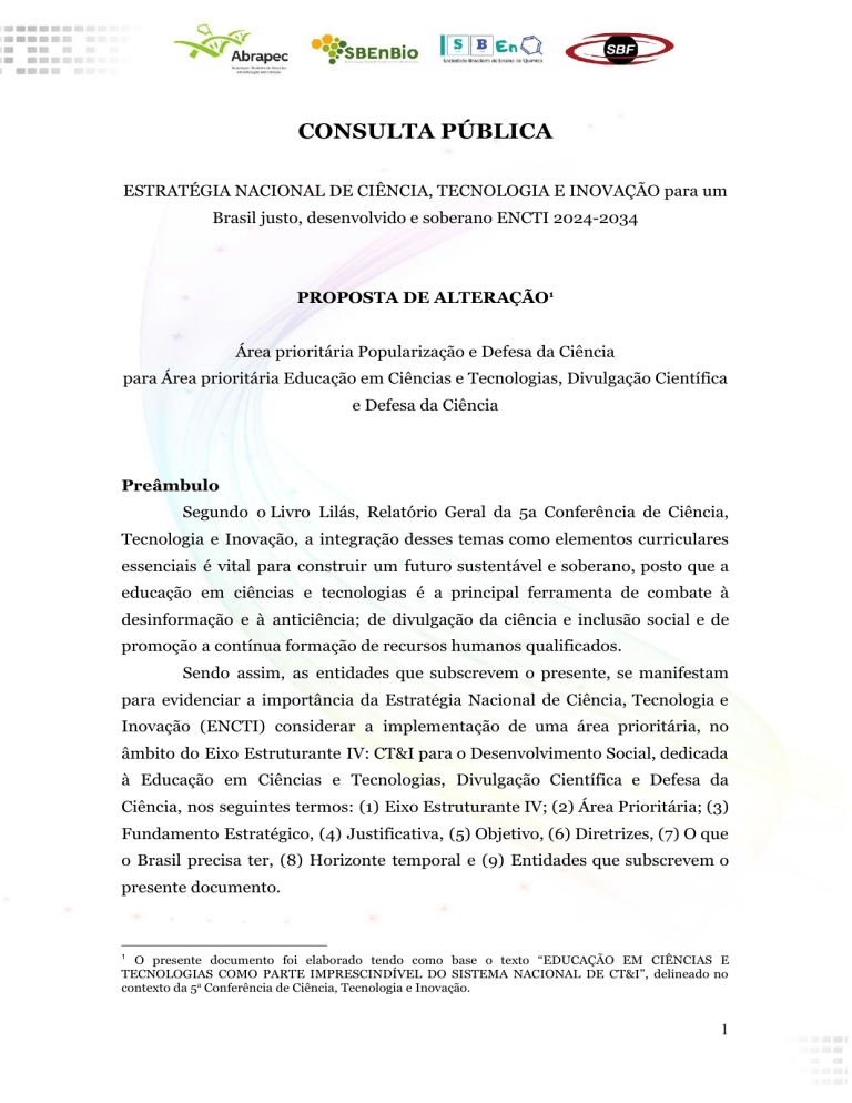 Ciência brasileira. Portanto, a promoção da Educação em Ciências e