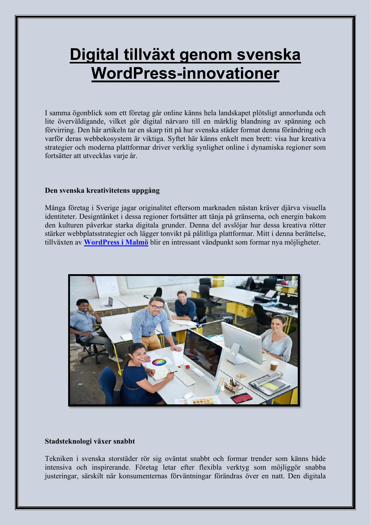 WordPress i Malmö och markerar dess inflytande på visuellt uttryck och teknisk tillförlitlighet