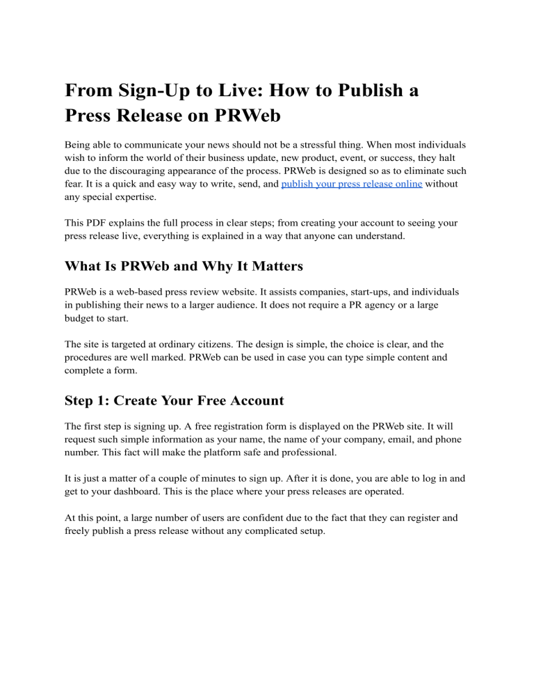 procedures are well marked. PRWeb can be used in case you can type simple content and