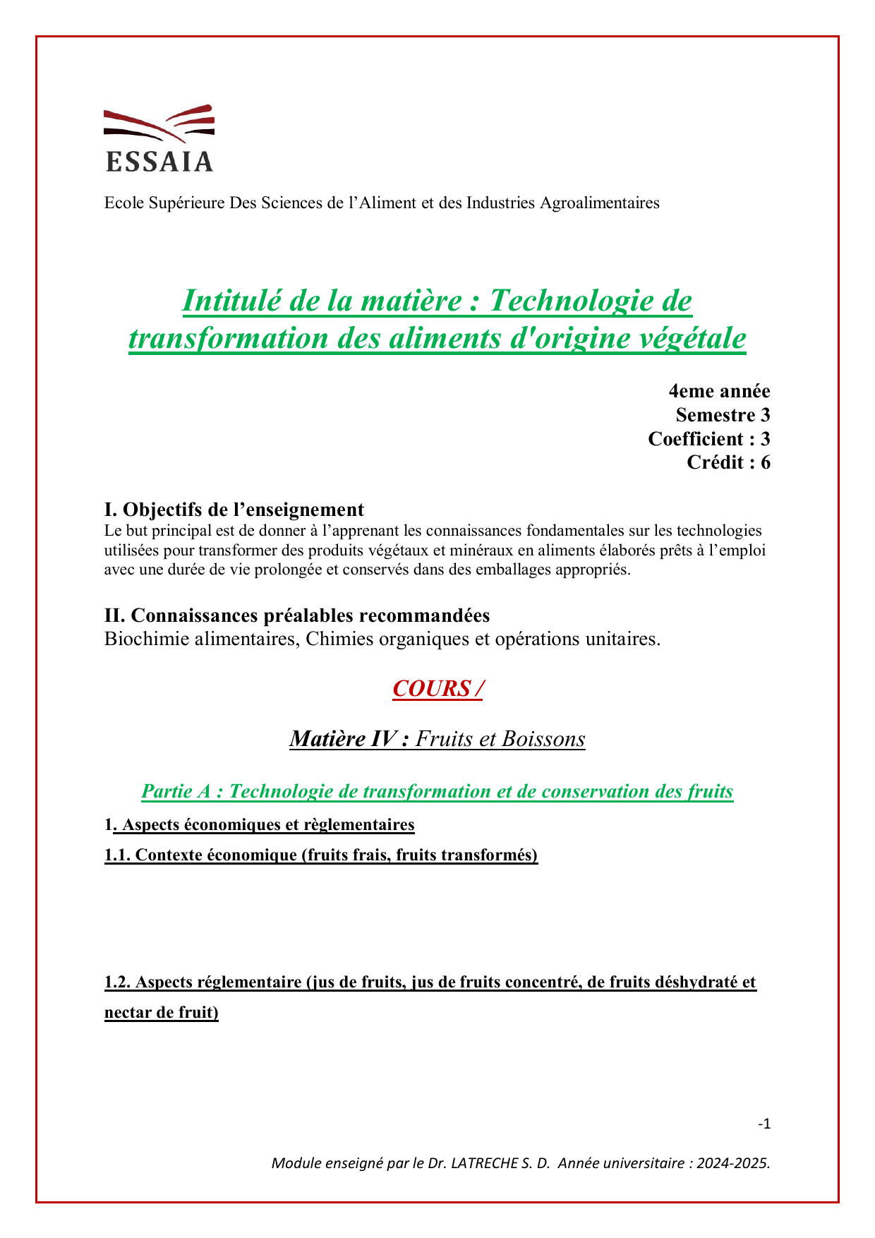 Module enseigné par le Dr. LATRECHE S. D. Année universitaire : 2024-2025.