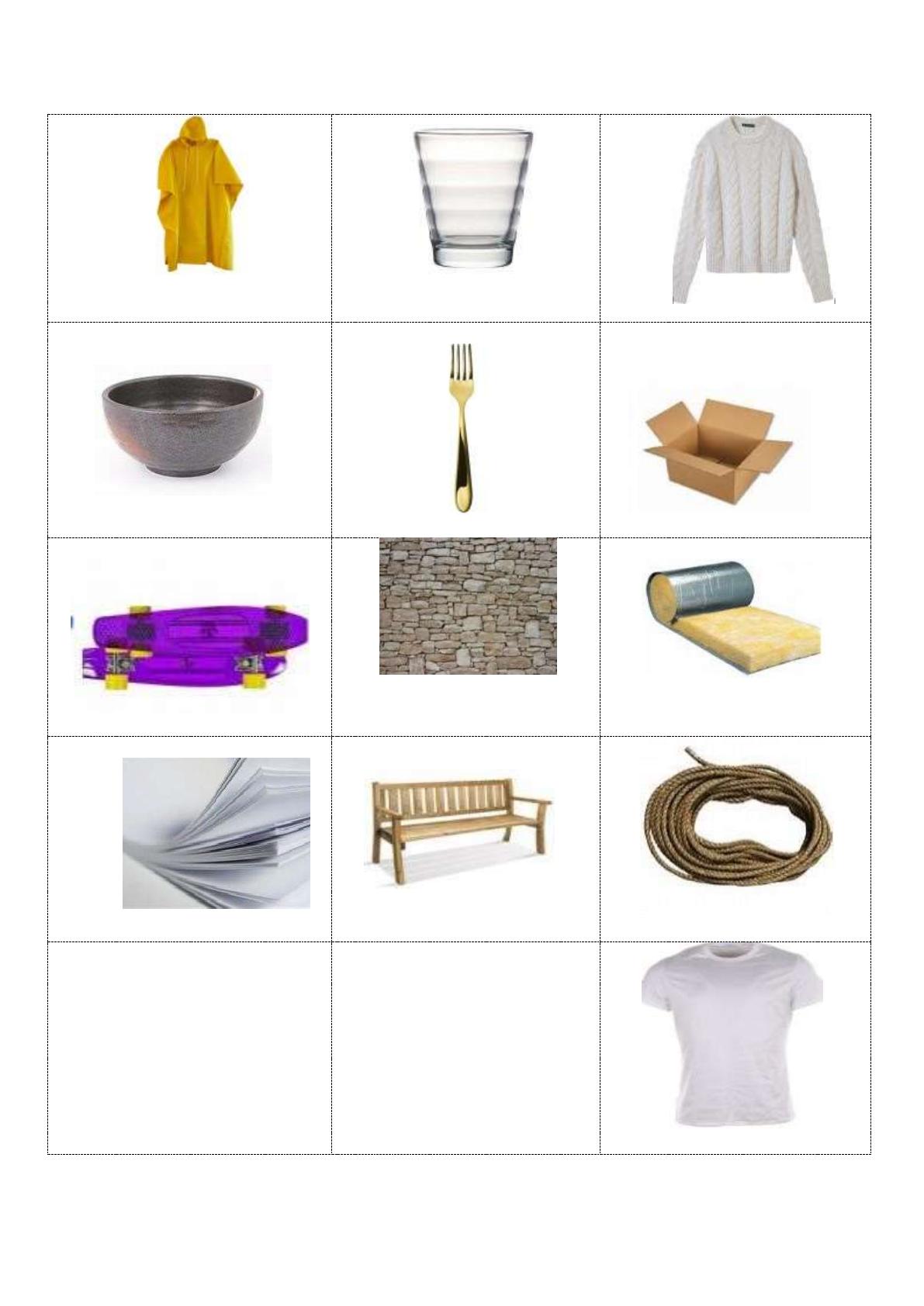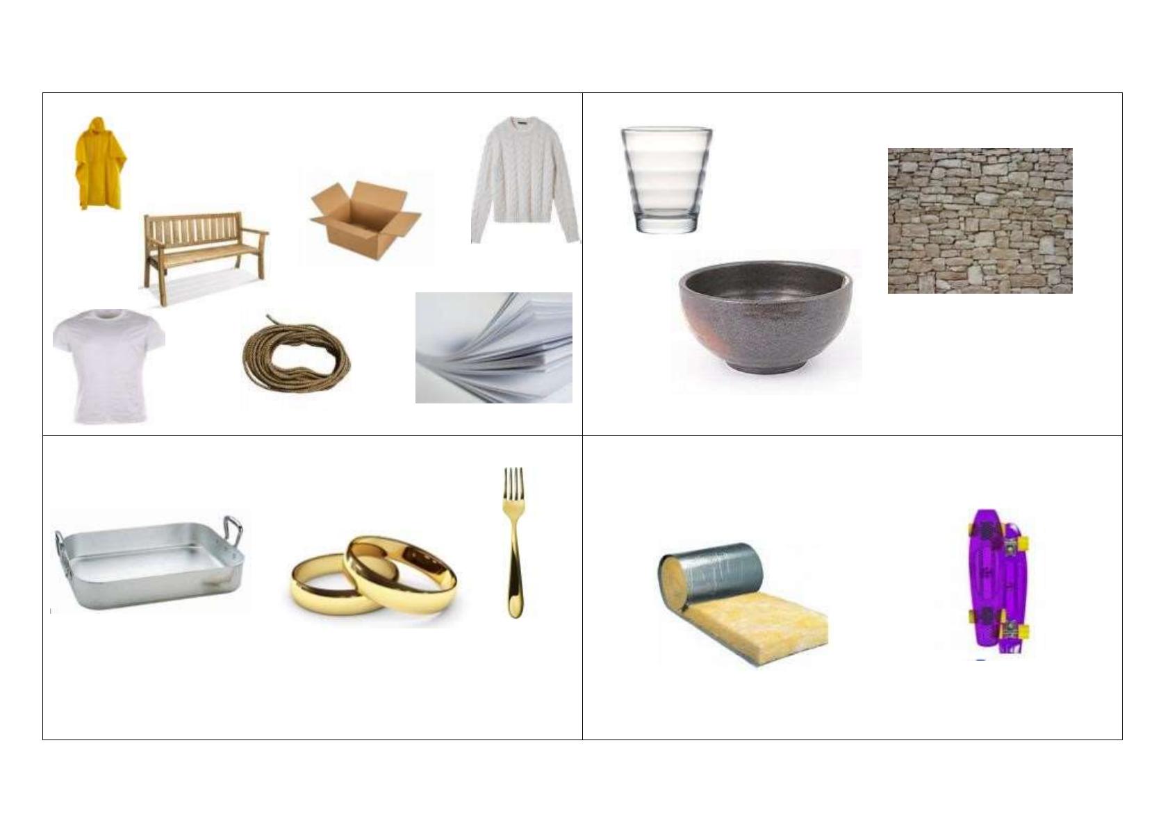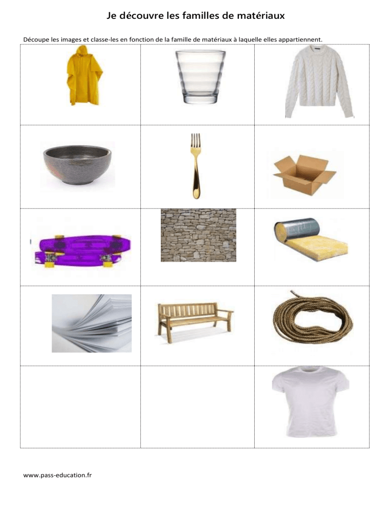 Découpe les images et classe-les en fonction de la famille de matériaux à laquelle elles appartiennent.
