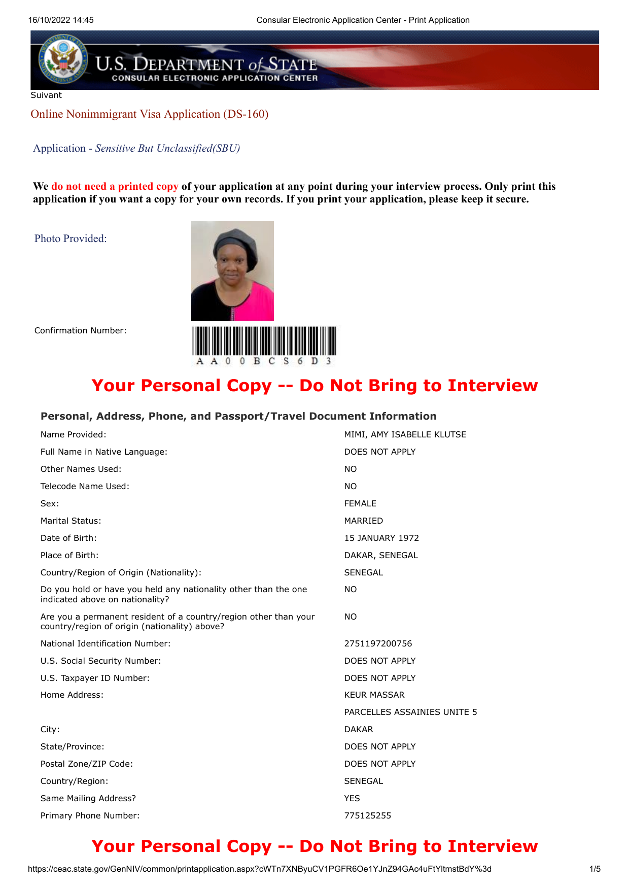 Your Personal Copy -- Do Not Bring to Interview