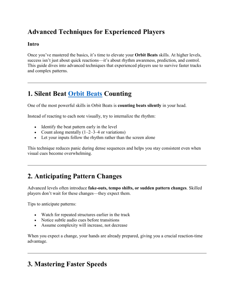 Once you’ve mastered the basics, it’s time to elevate your Orbit Beats skills. At higher levels,