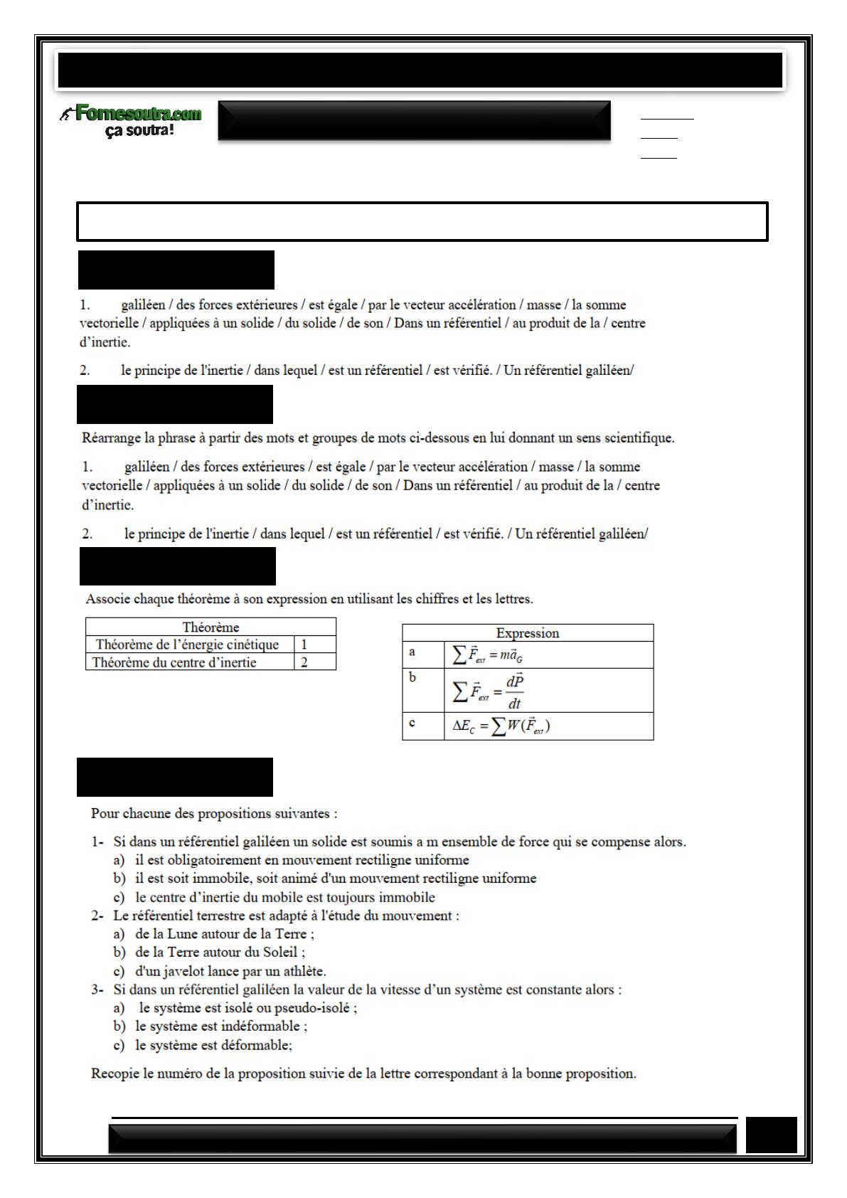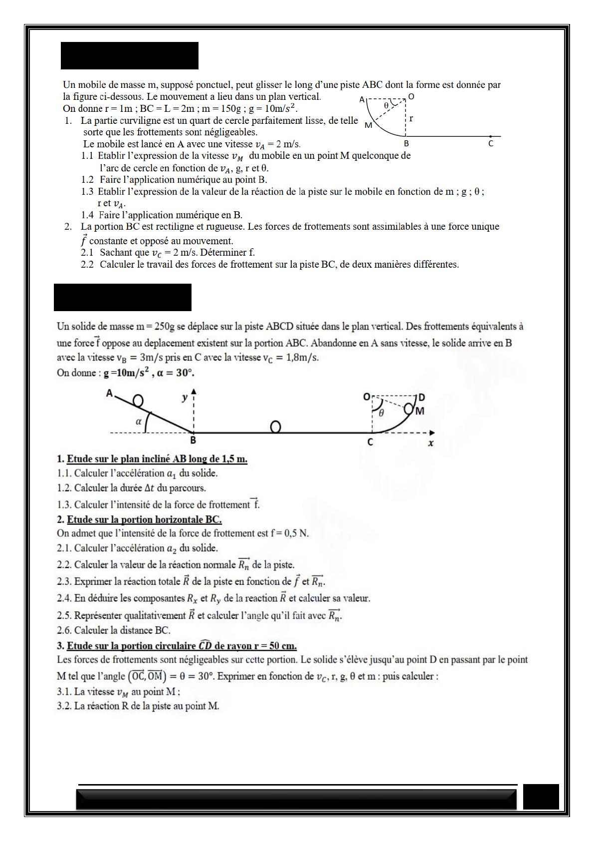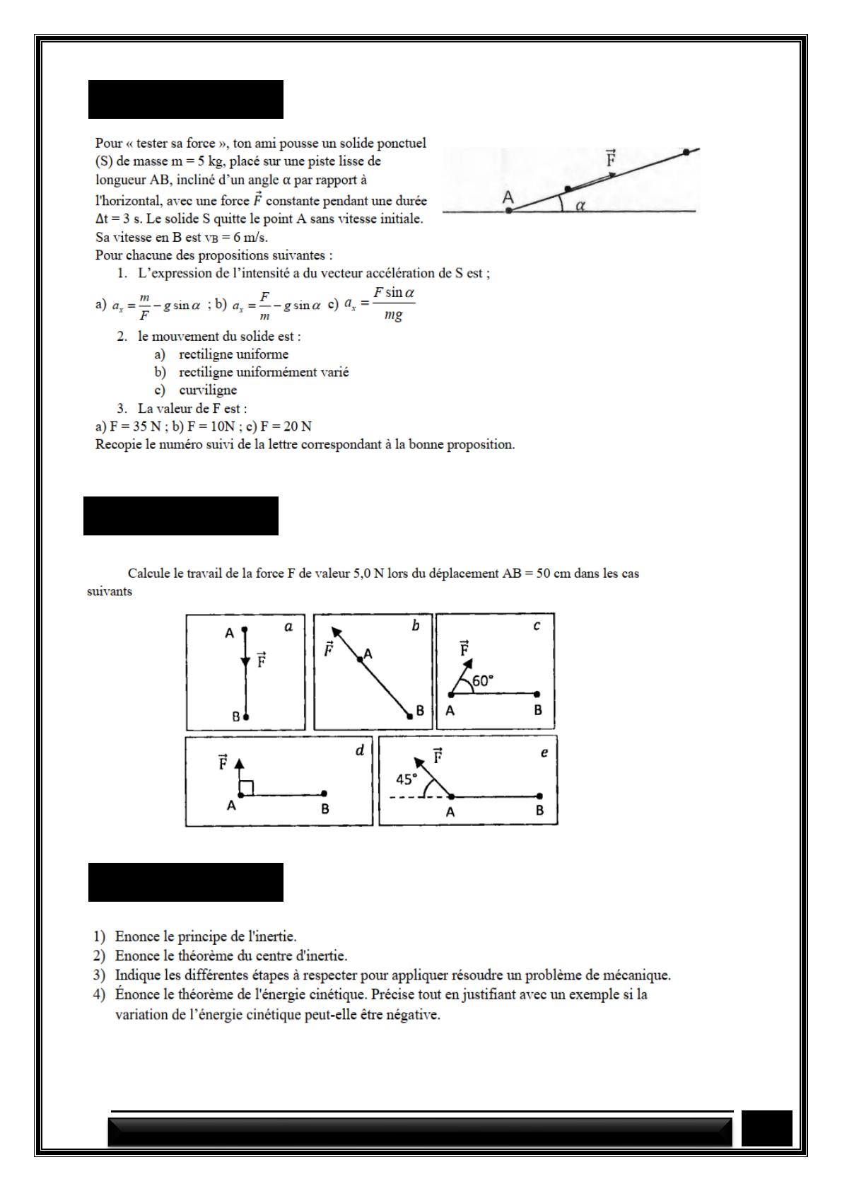 FICHE DE TRAVAUX DIRIGES PHYSIQUE Tle D MOUVEMENT DU CENTRE D’INERTIE D’UN SOLIDE BY TEHUA