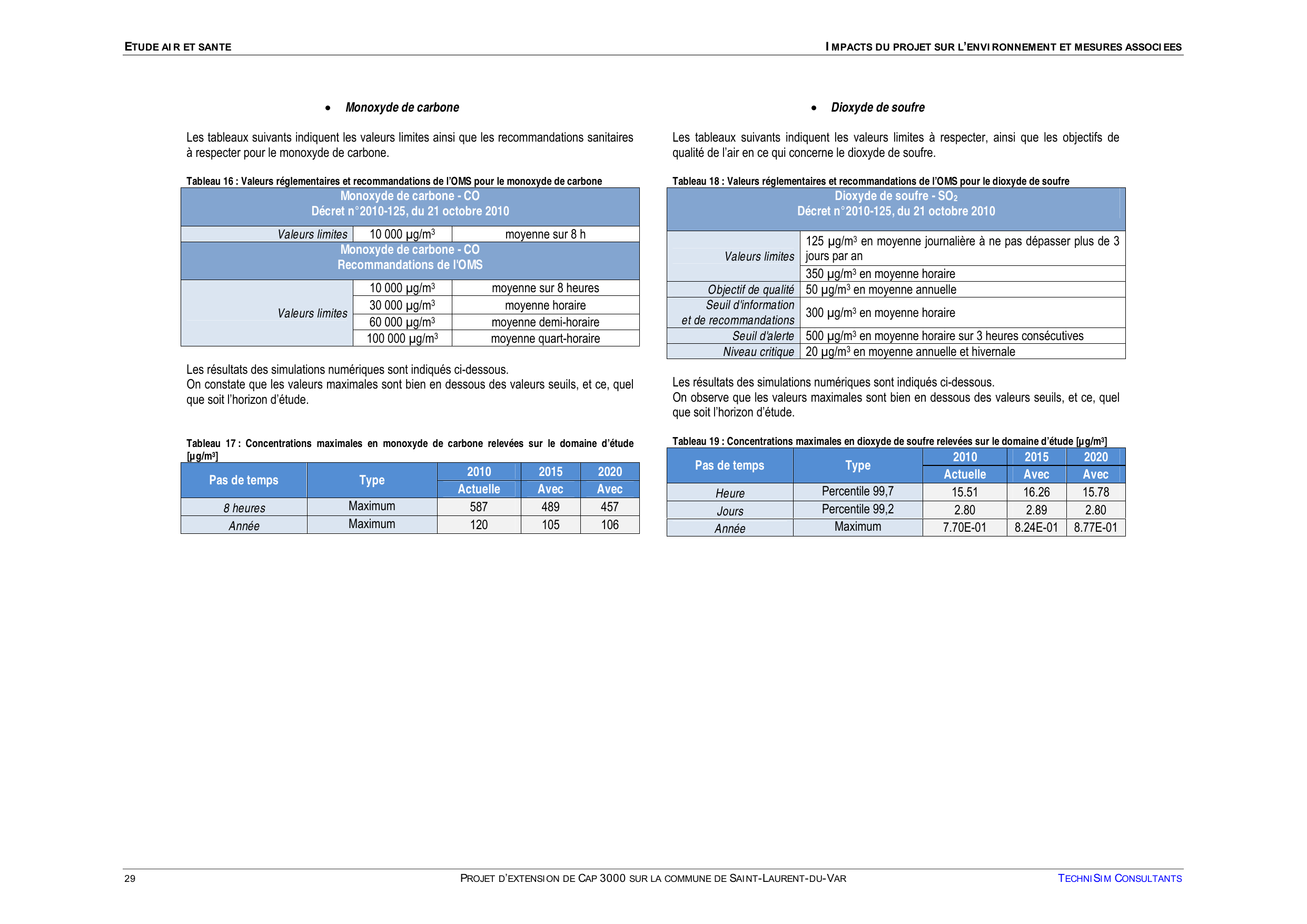 obtenues sont bien inférieures aux seuils réglementaires.