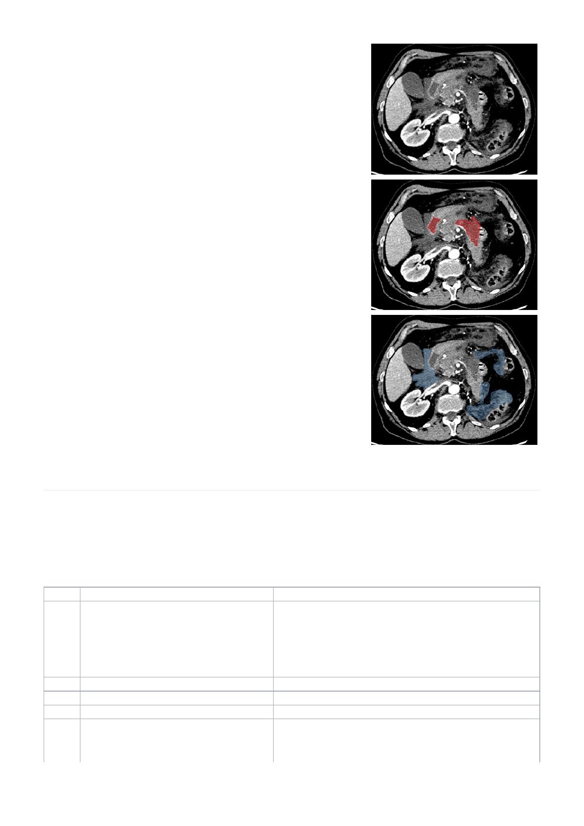 •La présence et l’étendue d’une nécrose pancréatique (défaut de rehaussement du pancréas au temps précoce) ou