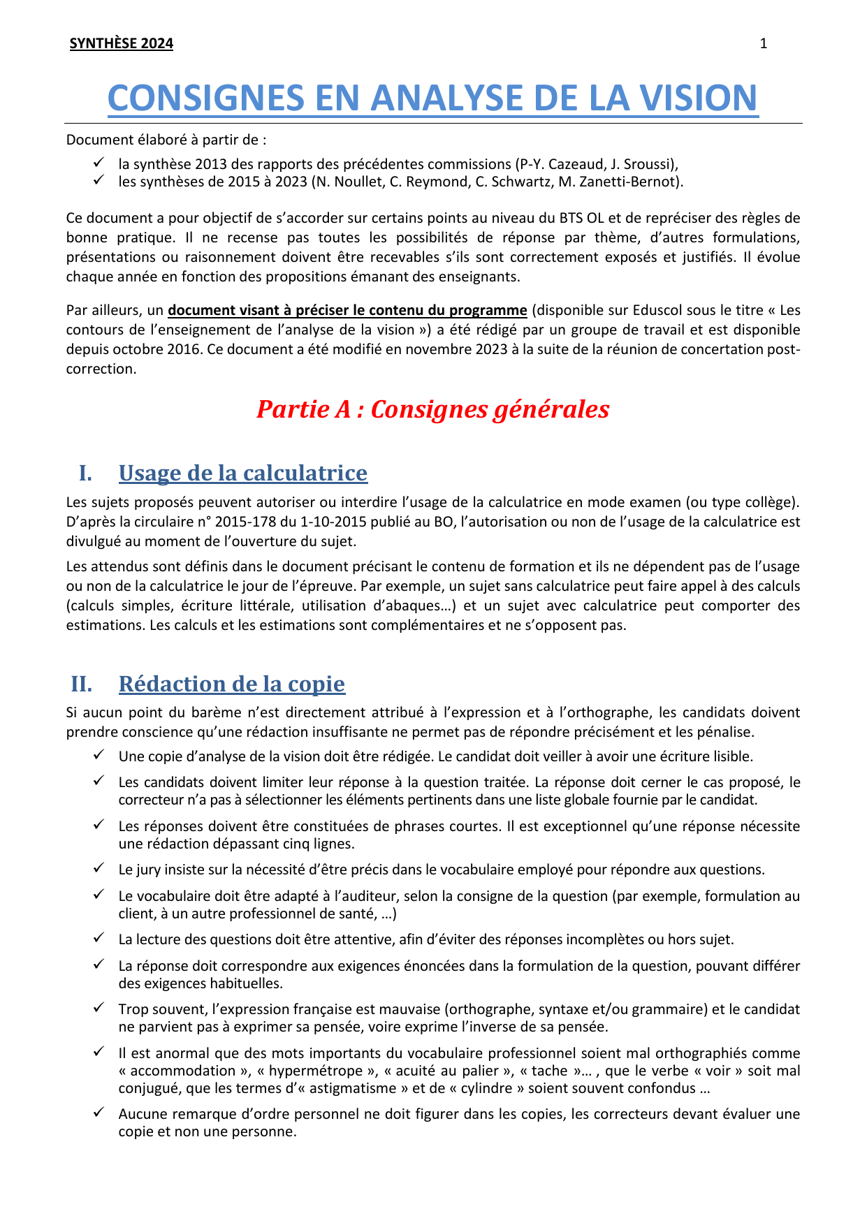 contours de l’enseignement de l’analyse de la vision ») a été rédigé par un groupe de travail et est disponible