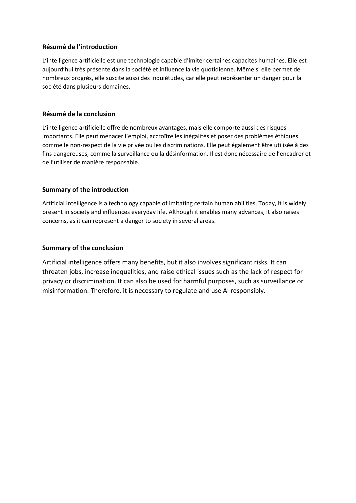 Résumé de la conclusion
