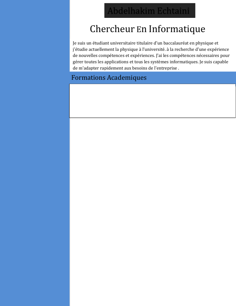 CV Abdelhakim Echtaini - Étudiant Physique