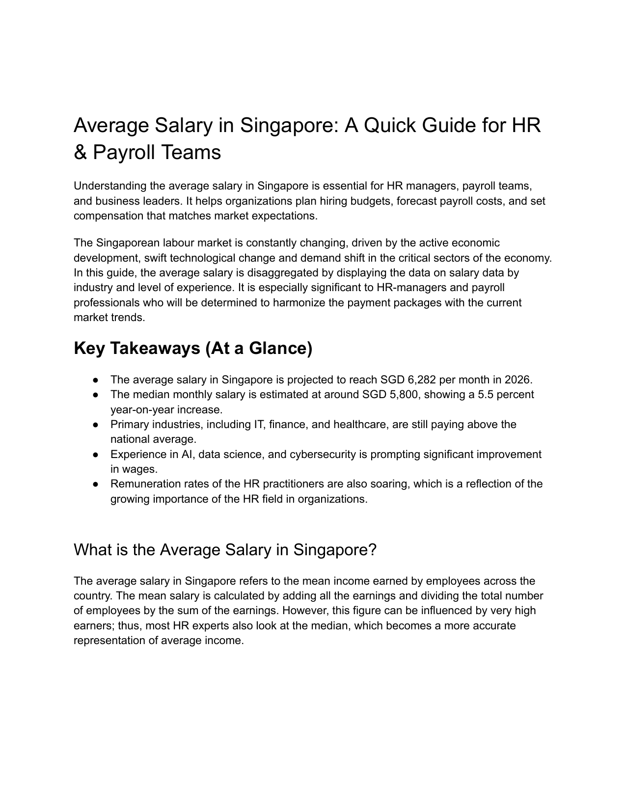 In 2026, Singapore’s average monthly salary is expected to be around SGD 6,282, which