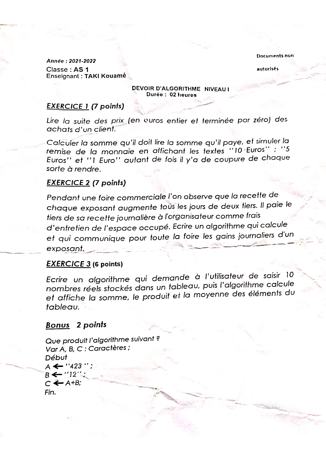 Algorithm Assignment Level 1 Exercises