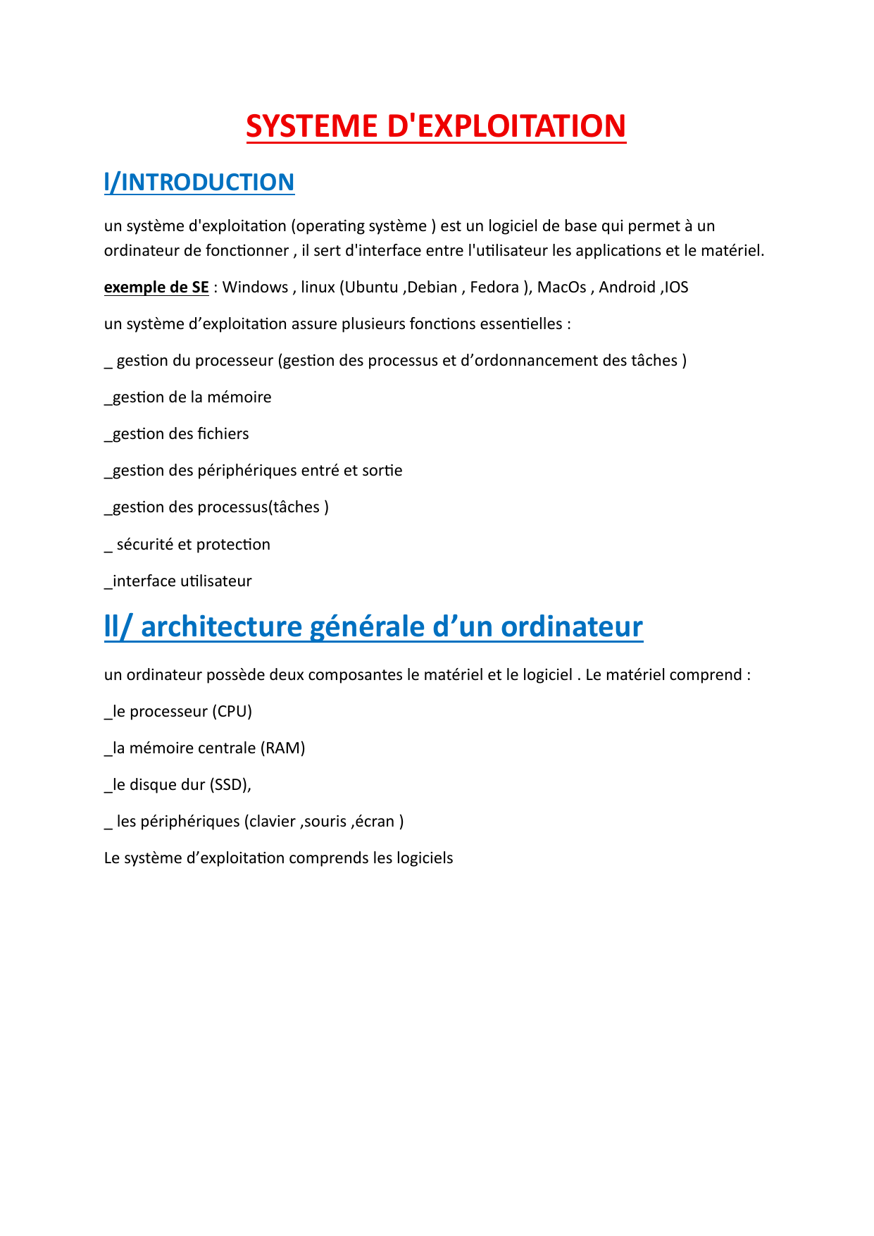 Exemple : MS-DOS (mono tâches mono ulisateur ), Windows( post personnel ), Android ,IOS