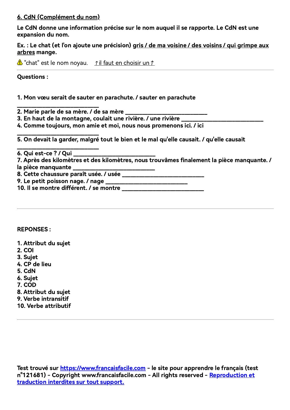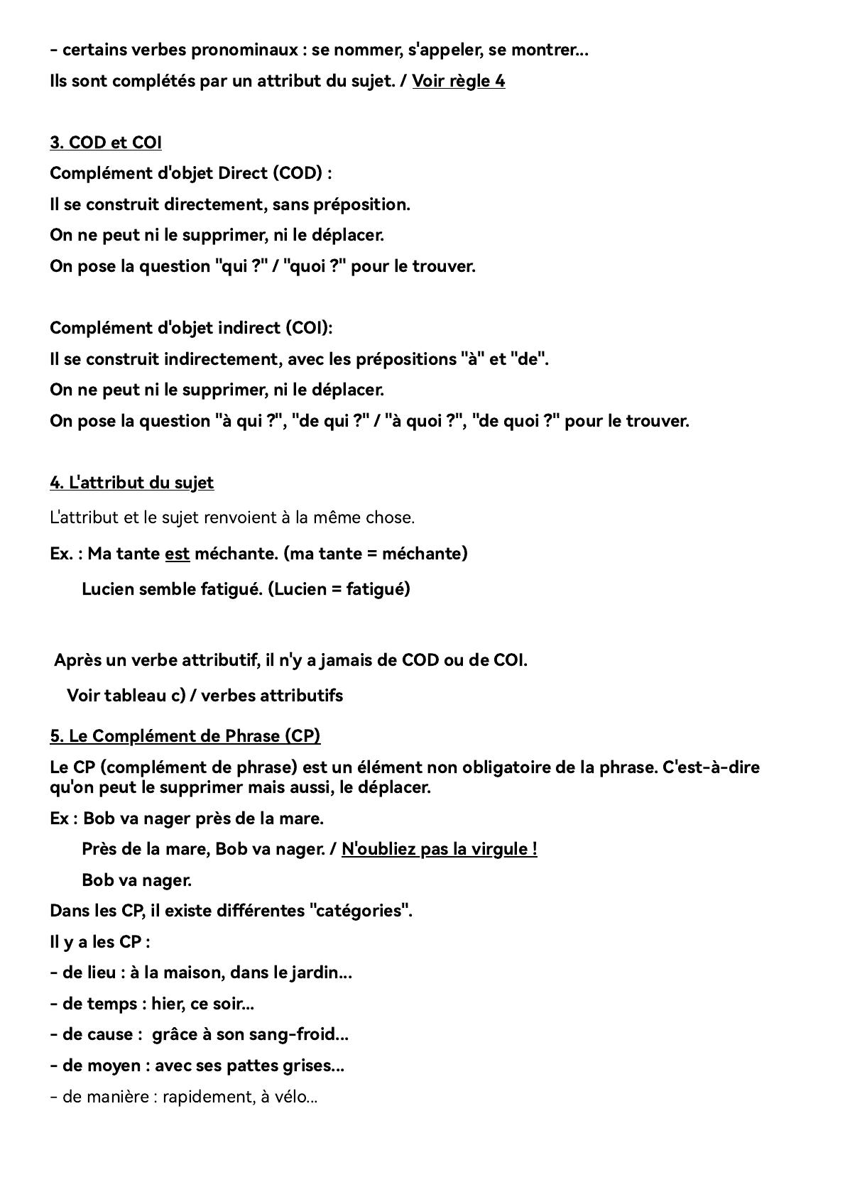 Exercices Fonctions Grammaticales : Sujet, COD, COI, Attribut